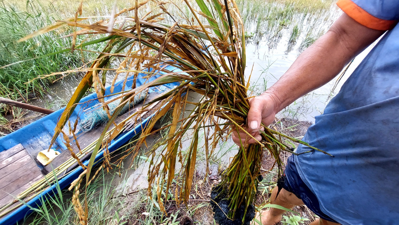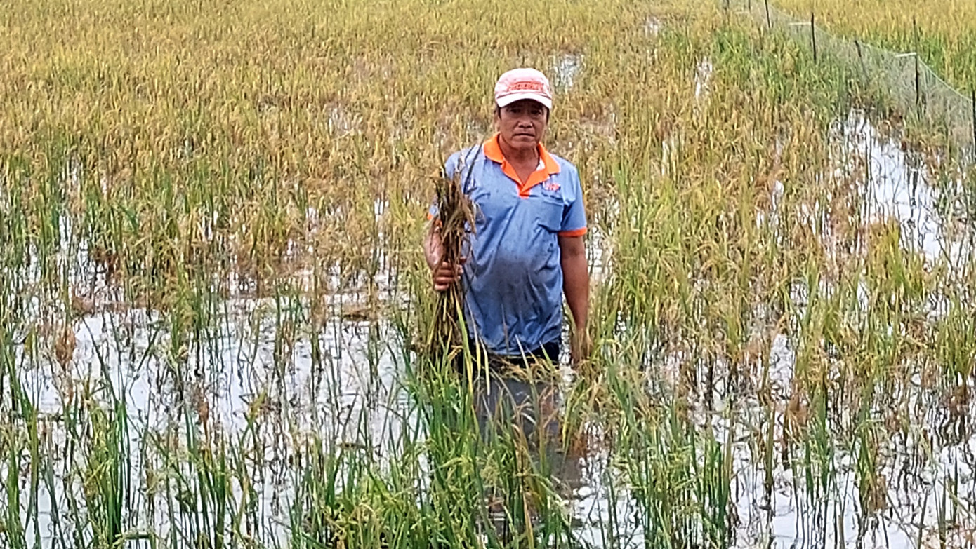 | Lúa chín bị chìm trong nước ở Hậu Giang. |