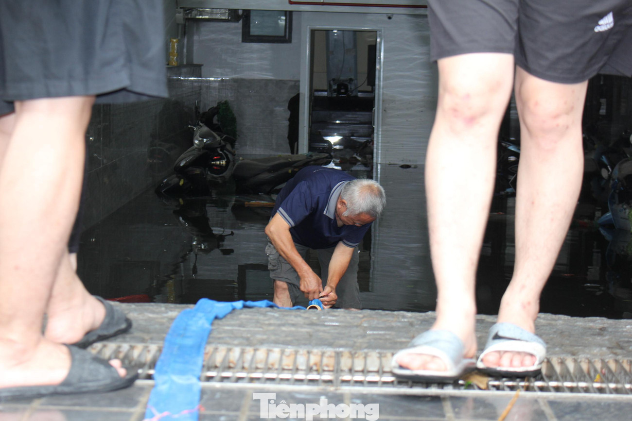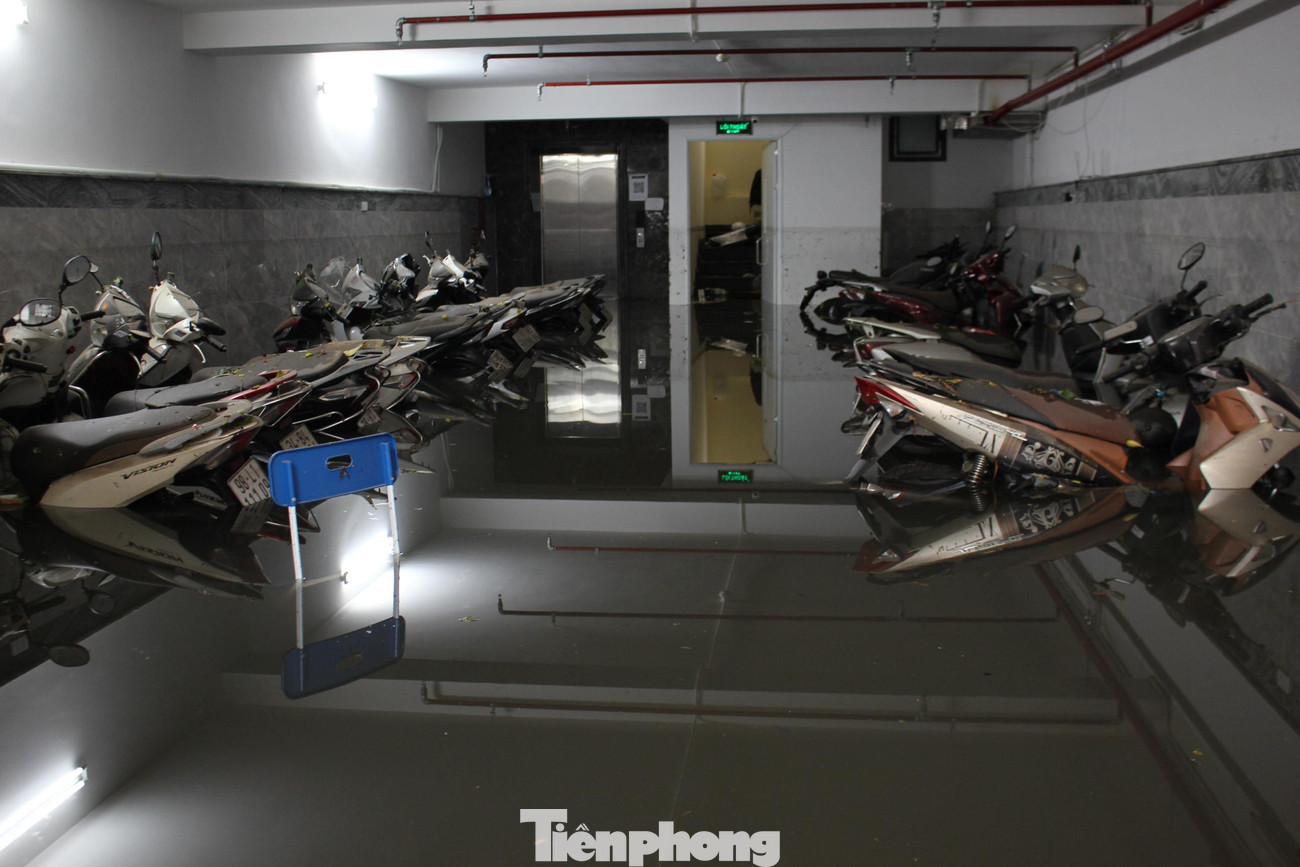 Do lượng nước mưa đổ dồn xuống hầm để xe quá nhanh và quá lớn, nhưng hệ thống thoát nước lại "quá tải" nên chăn, màn, quần áo, đồ dùng cá nhân của nhiều bảo vệ hầm để xe chìm trong dòng nước. Thậm chí, ông Đỗ Xuân Kỷ (60 tuổi, bảo vệ) đã phải ngủ qua đêm trên hiên của một tòa nhà văn phòng.