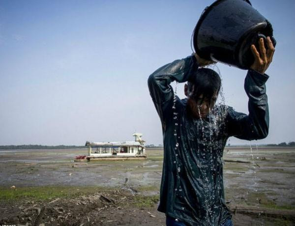 Vội vàng dội một chậu nước vì khí hậu quá nóng và oi bức