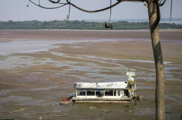 Một thuỷ phi cơ đỗ dưới nền đầm lầy tại thành  phố Manaus. Trước đây, nơi này cũng là một hồ nước lớn