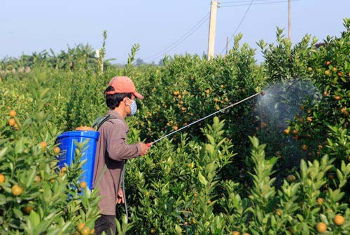 Nhiều người chọn dùng phương pháp phun thuốc trừ sâu để cứu vườn quất.