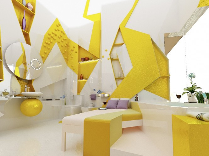 Với những màu sắc dịu mắt và đường nét trừu tượng có phần kỳ quặc, các kiến trúc sư đã thiết kế căn phòng theo nghệ thuật vẽ phối màu hài hòa.