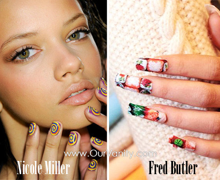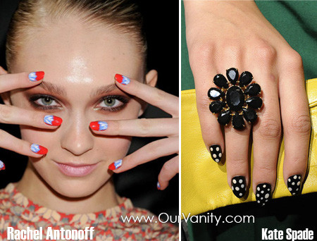 Những thiết kế móng nghệ thuật dễ thương đã làm mưa gió trên sàn diễn của Kate Spade, Nicole Miller, Rachel Antonoff và Marian Newman. Người mẫu của Kate Spade sơn móng đen và điểm tô chấm bi trắng. Nicole Miller phô trương những màu móng sáng sặc sỡ. Rachel Antonoff khoe hoa xanh dương trên nền móng đỏ. Còn Marian Newman sáng tạo những hình in sushi độc đáo.