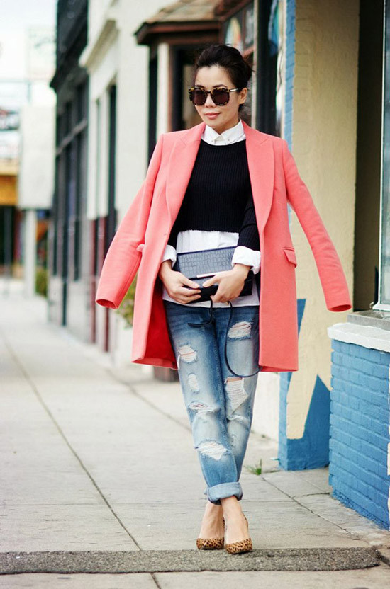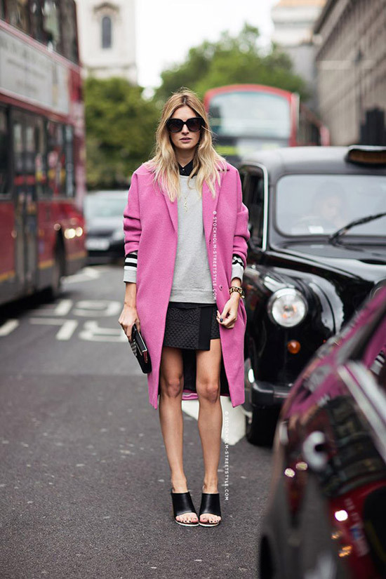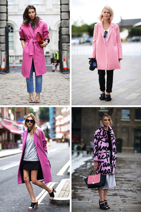 Điểm chung dễ thấy của các fashionista trong những ngày này: chiếc áo khoác hồng với những tông màu đậm nhạt khác nhau. Nếu bạn muốn vừa diện thật đẹp như những “tay chơi” thời trang sành sỏi, vừa trở nên ngọt ngào và bắt mắt hơn, hãy chọn ngay cho mình một chiếc áo khoác hồng. Đó có thể là trench coat, pea coat, blazer... bất kì kiểu áo nào phù hợp với sở thích của bạn.