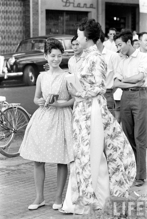 Phụ nữ Sài Gòn những năm 70 cũng không ngại mặc váy ngắn trên gối dạo phố. Họ biết làm điệu thêm chiếc bờm, mái tóc uốn cong gọn gàng như một minh tinh Hollywood, trên tai không quen đeo một bông hoa tai điệu đà.