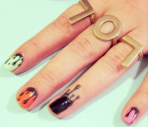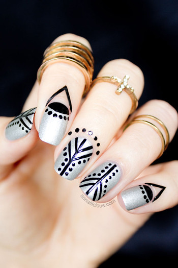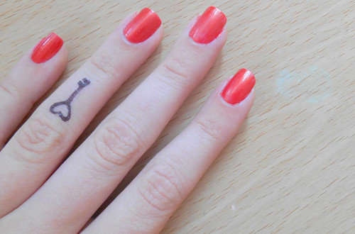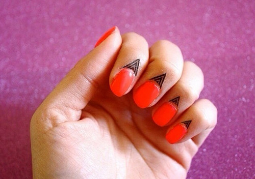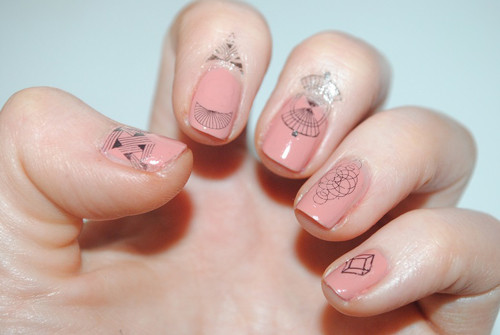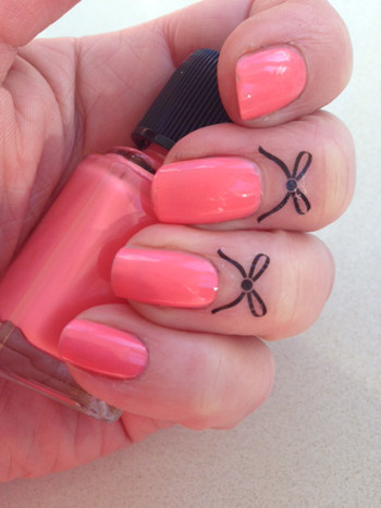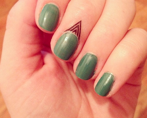 Vẫn là kiểu sơn móng đơn giản, nhưng thêm họa tiết dán móng sẽ tạo nét cá tính và khác biệt.