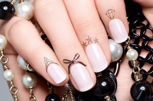 Nhiều người thích dán họa tiết vào chân móng phần sát da tay, đem lại tạo hình thú vị cho bàn tay.
