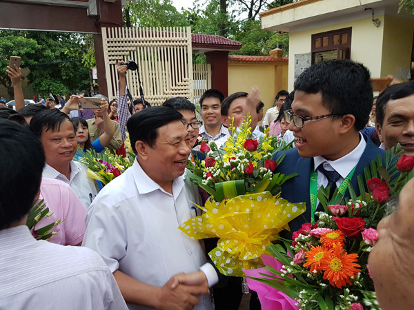 "Thành tích của các em đã làm rạng rỡ thêm cho truyền thống hiếu học của người dân xứ Nghệ và làm dày thêm bề dày thành tích của giáo dục tỉnh nhà. Tôi cũng mong muốn rằng các học sinh tiếp tục phấn đấu, rèn luyện, không vội thỏa mãn thành tích để thực sự trở thành những con người có tài, có đức, phục vụ cho quê hương đất nước. Ngoài ra, tôi đánh giá cao sự chỉ dạy của thầy cô giáo trong quá trình bồi dưỡng các em cũng như phụ huynh luôn tin tưởng động viên", ông Nguyễn Xuân Đường nói.