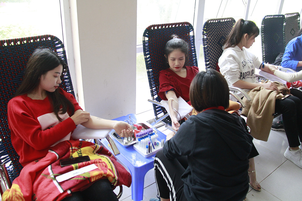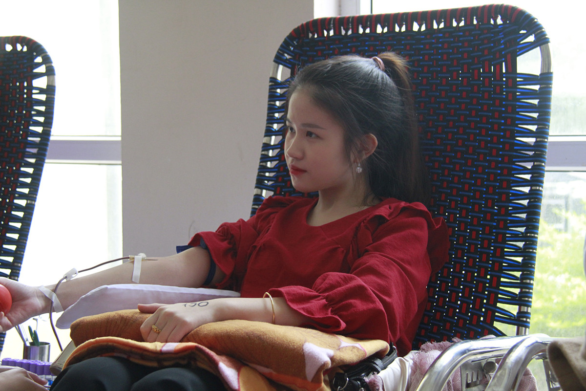 Sinh viên Phan Thị Mụi, sinh năm 2001, khoa Giáo dục mầm non trường Đại học văn hóa thể thao và du lịch Thanh Hóa hiến máu tình nguyện. Đây là lần đầu tiên Mụi tham gia hiến máu