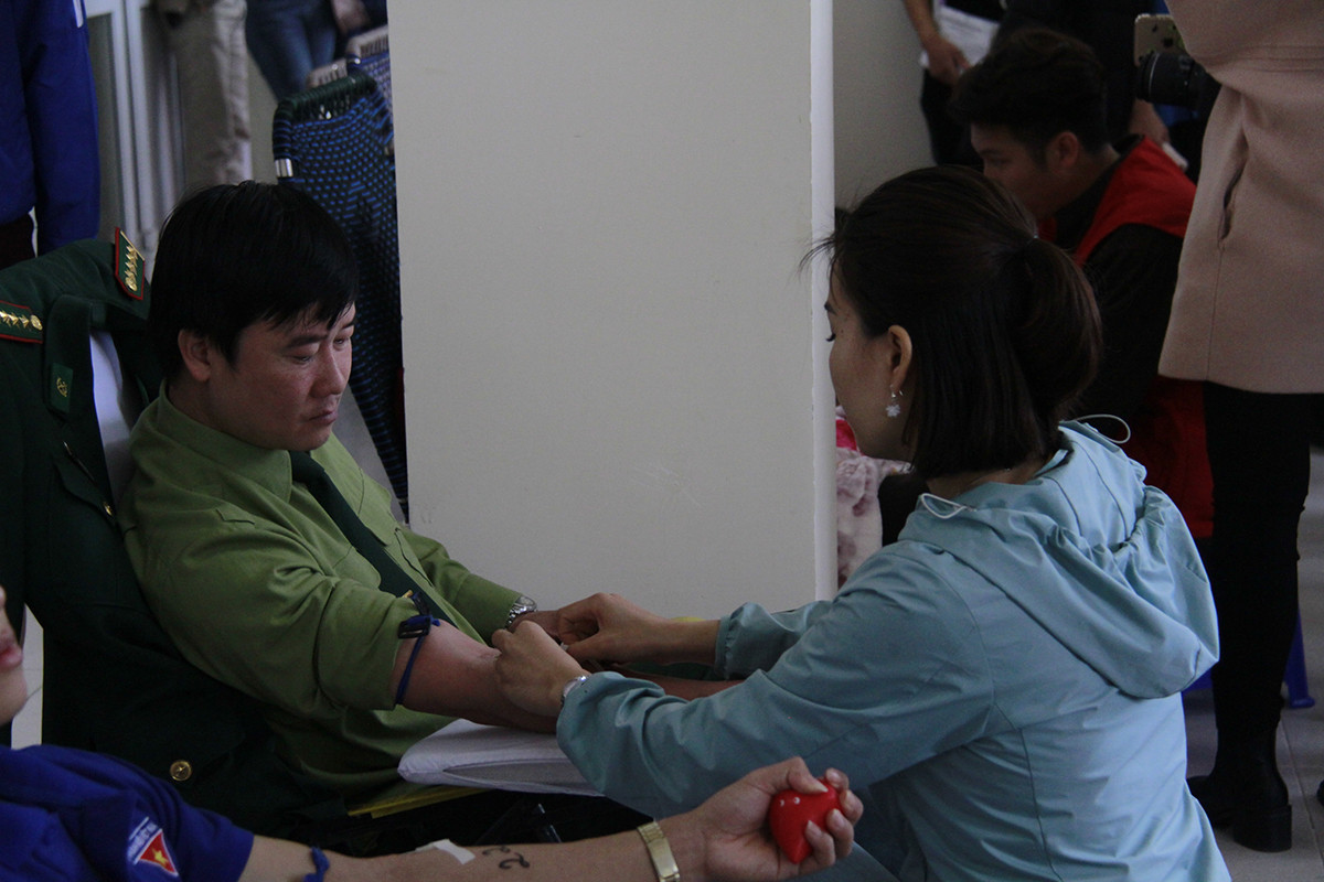 Đại úy Nguyễn Đức Tùng, trợ lý công tác quần chúng, phụ trách đoàn thanh niên Bộ đội biên phòng tỉnh tham gia hiến máu. Hiến máu đúng dịp 22/12, anh Tùng bảo, thấy có thêm ý nghĩa vì giúp được người khác. "Ngày của mình mà làm được việc tốt thì vui hơn", anh Tùng nói.