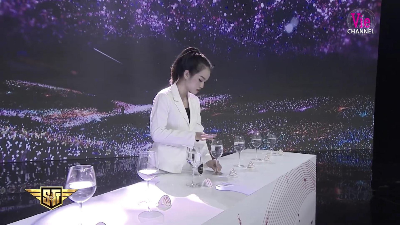 Có 30 chiếc ly thủy tinh với kiểu dáng, kích thước và chứa đựng một lượng nước khác nhau. Gia Phúc sẽ được nghe lần lượt tiếng miết ly để ghi nhớ âm thanh phát ra từ từng ly. Sau đó, BGK sẽ chọn ra 5 chiếc ly bất kỳ để các trợ lý miết cùng lúc tạo thành một bản hòa âm độc đáo.