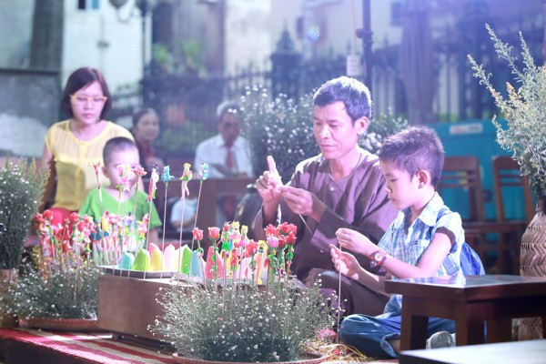 Gian hàng trẻ em hào hứng nhất và thích nhất là quầy nặn tò he và làm bánh trung thu