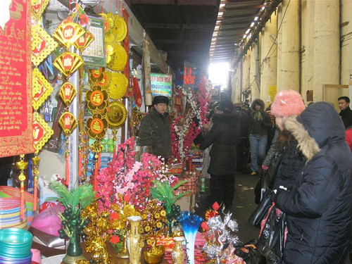 Nếu như bỏ đi cái lạnh giá của mùa đông nước Nga, ai cũng có thể lầm tưởng đây là một góc của chợ Đồng Xuân Hà Nội. Thậm chí các chủng loại rau quả, thực phẩm còn đa dạng hơn nhiều vì nó là những mặt hàng tổng hợp của cả 2 nước châu Á đón Tết theo Âm lịch là Trung Quốc và Việt Nam.