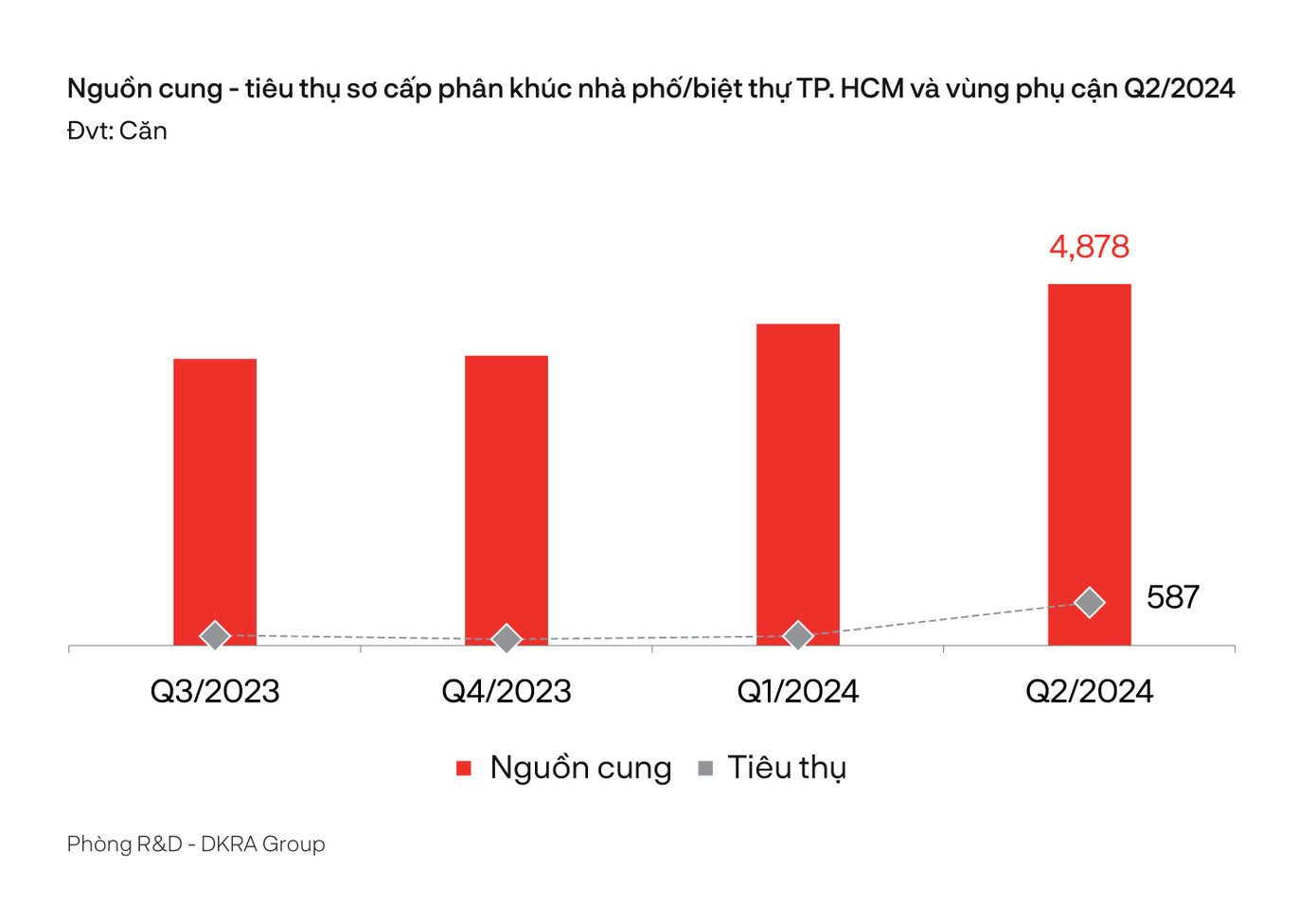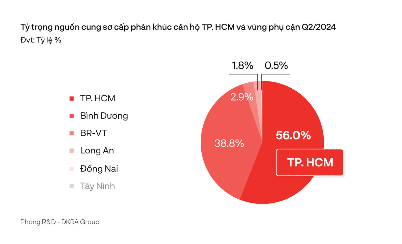 Theo báo cáo thị trường Bất động sản nhà ở TPHCM và vùng phụ cận của Tập đoàn Dịch vụ Bất động sản DKRA (DKRA Group), quý II/2024 tiếp tục ghi nhận nhiều diễn biến tích cực ở các phân khúc đất nền, căn hộ, nhà phố, biệt thự. Nhìn chung mặt bằng giá sơ cấp không có nhiều biến động so với cùng kỳ năm 2023.