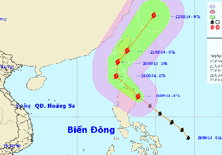Trong khoảng 24 đến 48 giờ tiếp theo, bão có khả năng đổi hướng di chuyển theo hướng Bắc, sau đó là Bắc Đông Bắc (hướng ra phía ngoài Biển Đông), mỗi giờ đi được khoảng 15 - 20km và còn tiếp tục mạnh thêm. Do ảnh hưởng của hoàn lưu bão, từ chiều tối và đêm nay (20/9), vùng biển phía Đông Bắc Biển Đông có gió mạnh dần lên cấp 6 – 8, vùng gần tâm bão cấp 9 -10, giật cấp 11 – 12. Biển động rất mạnh.