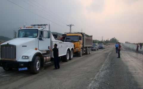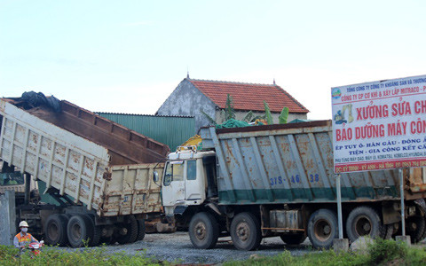 Trái lại, trong các gara ô tô, cây xăng dầu, bãi đất trống ven đường, lạicó rất nhiều xe Howo 3 chân, 4 chân chở đầy đất đá nằm chờ nhiều giờliền.