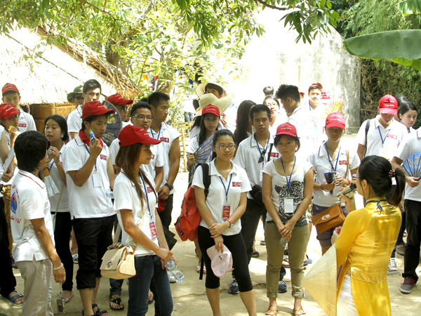 | Ngày 16-7, sau khi đã dâng hoa tại tượng đài Chủ tịch Hồ Chí Minh (thành phố Vinh, Nghệ An), đoàn thanh niên kiều bào tham dự “Trại hè Việt Nam 2012” đã viếng mộ Cụ Hoàng Thị Loan, thăm khu di tích Kim Liên (cụm di tích Làng Sen, Hoàng Trù, Nhà tưởng niệm). Tiếp đó, Ngày 17-7, đoàn có mặt tại Hà Tĩnh dâng hương tại Khu di tích Ngã ba Đồng Lộc; thăm quan tháp chuông. Rồi tiếp tục hướng về Huế… |