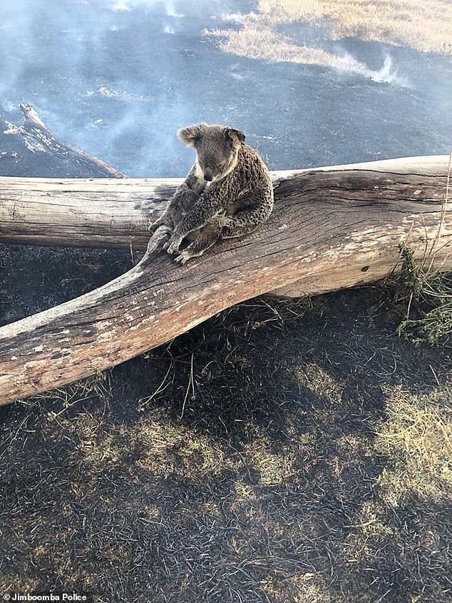 Mới đây một con gấu túi cái cùng con non của nó đã được sở cảnh sát thị trấn Beaudeser giải cứu trong đám cháy rừng ở Canungra, bang Queensland nước Úc.