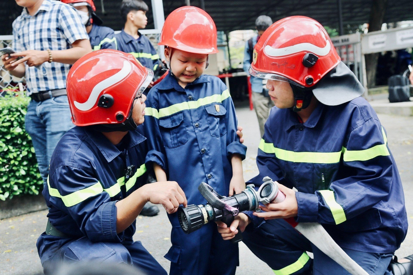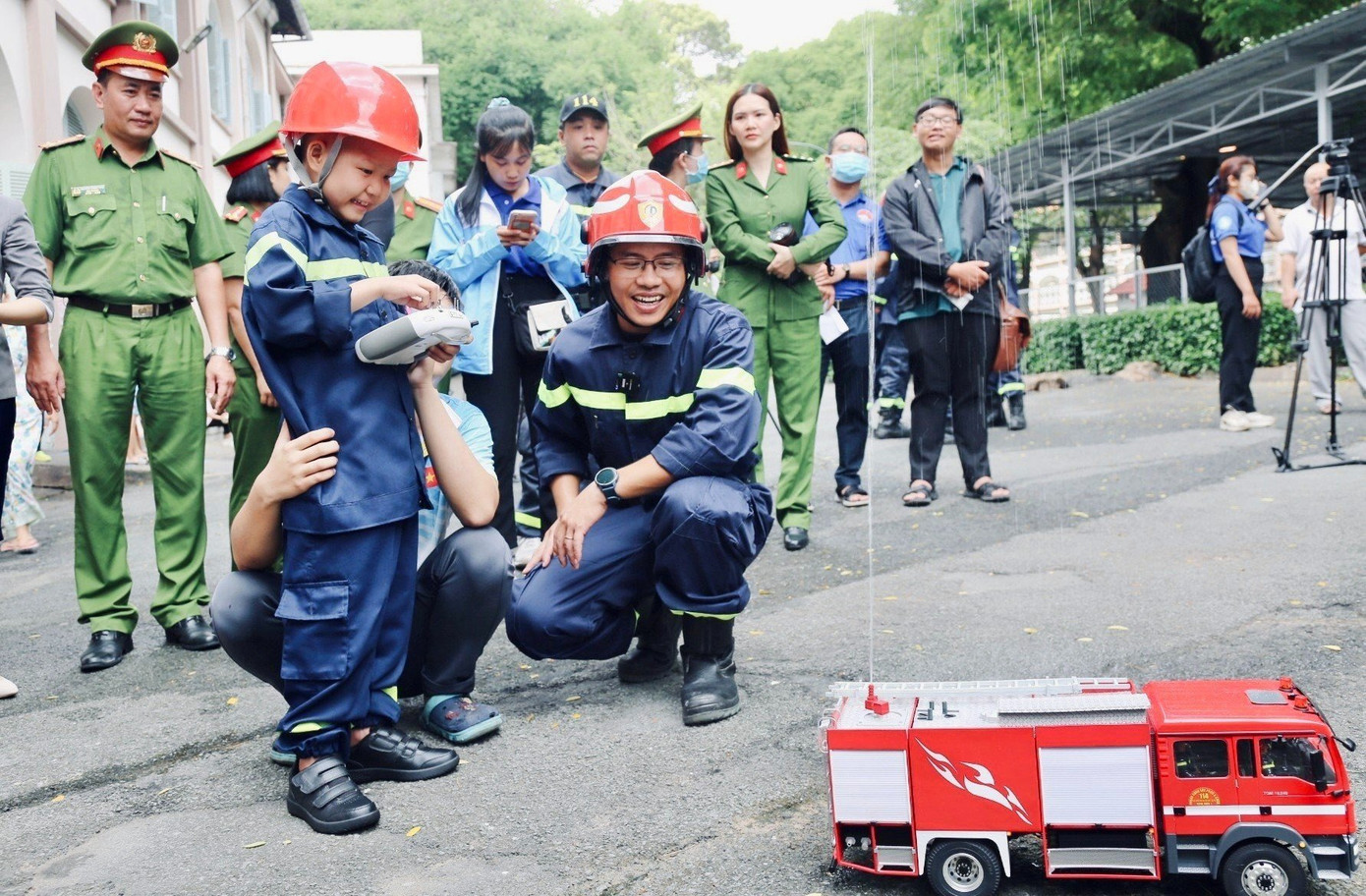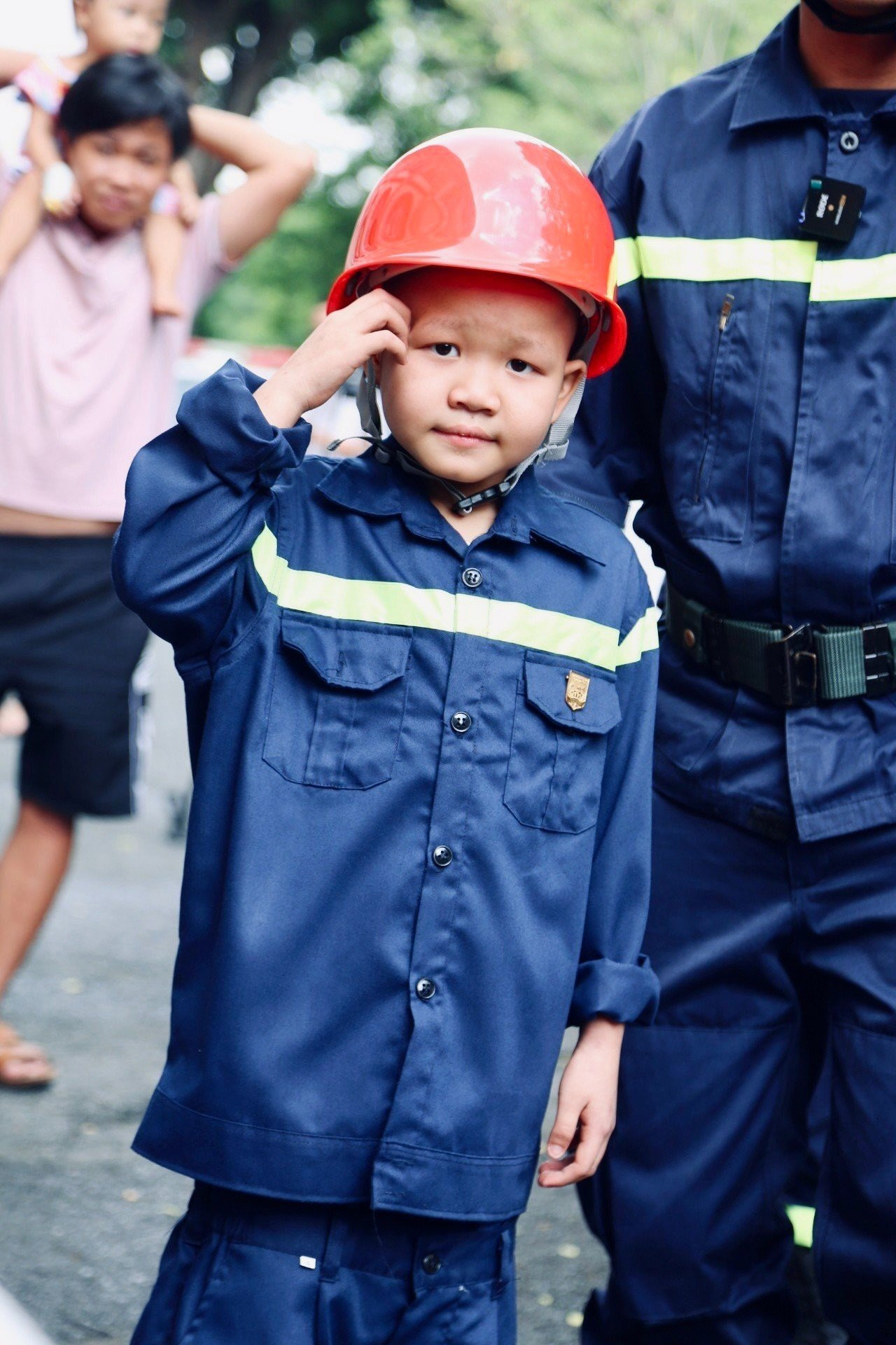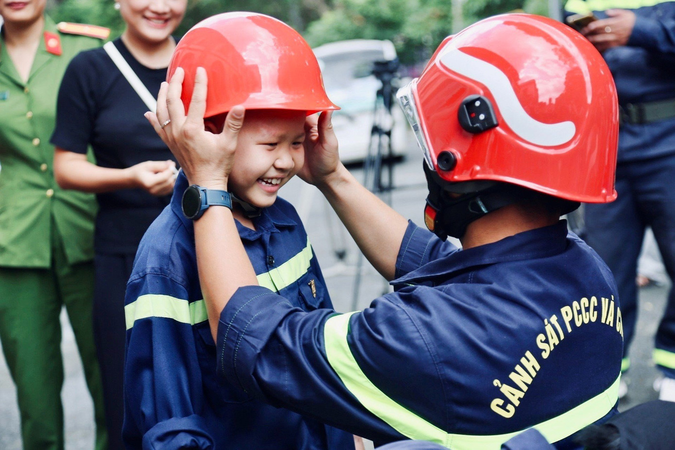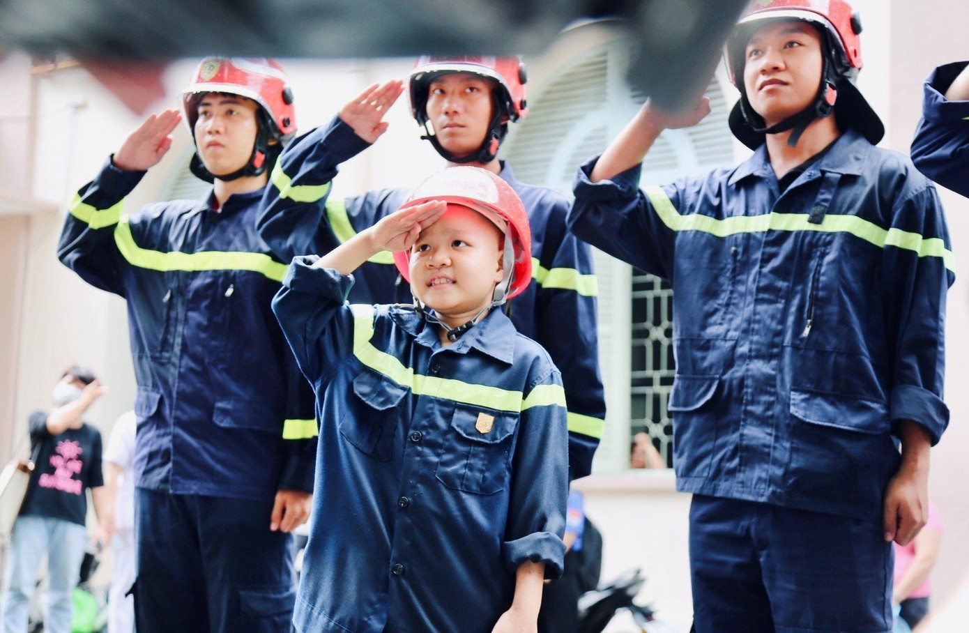 Nhìn thấy con trai nhỏ khoác lên mình bộ đồ lính cứu hỏa, được các chiến sĩ cảnh sát PCCC ân cần chỉ bảo từng động tác trong khâu cứu hộ, trao tặng bằng khen khi hoàn thành nhiệm vụ khiến chị Loan xúc động.