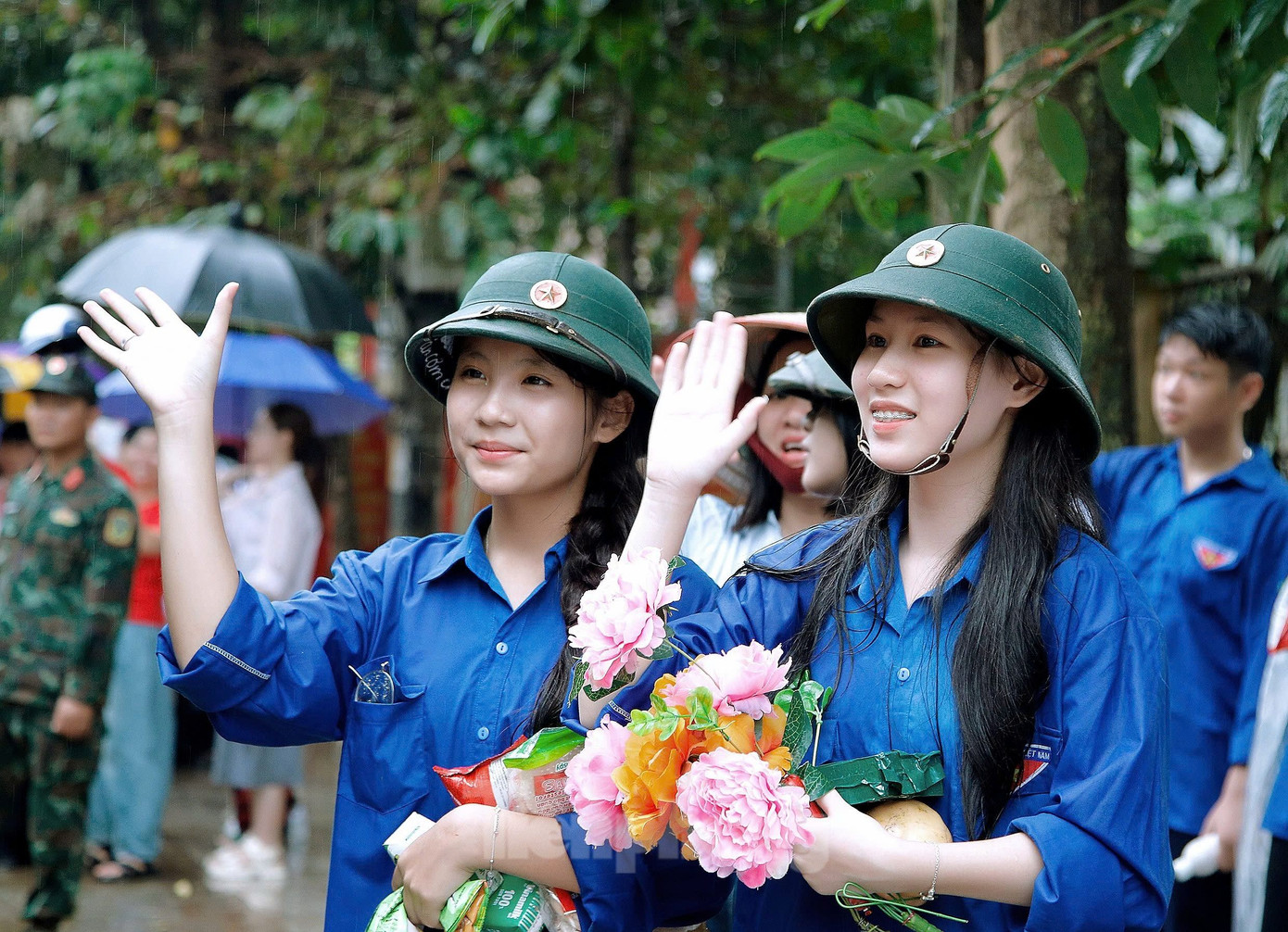 | Sáng 22/9, dù trời đổ mưa, hàng nghìn người dân phường Hồng Hà đã đứng bên đường Trần Hưng Đạo để chào tạm biệt cán bộ, chiến sĩ của Sư đoàn 316, Sư đoàn 355, Lữ đoàn 168, Lữ đoàn 297, Lữ đoàn 604, Quân khu 2 trở về đơn vị, sau nhiều ngày dầm mình trong bùn đất, hỗ trợ nhân dân khắc phục hậu quả cơn bão số 3. |