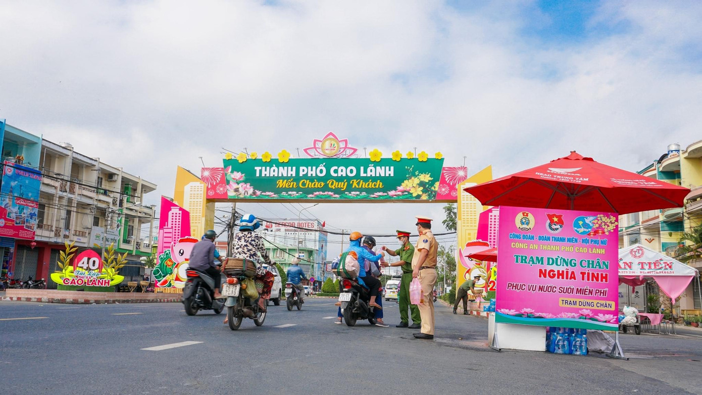 | Tại huyện Thanh Bình (Đồng Tháp), trạm dừng chân nghĩa được đặt trên tuyến N2, xã Tân Phú. Tại đây, các cán bộ, chiến sỹ và đoàn viên thanh niên tổ chức phát khăn lạnh, nước uống, cơm hộp.. miễn phí cho người dân về quê đón Tết. |