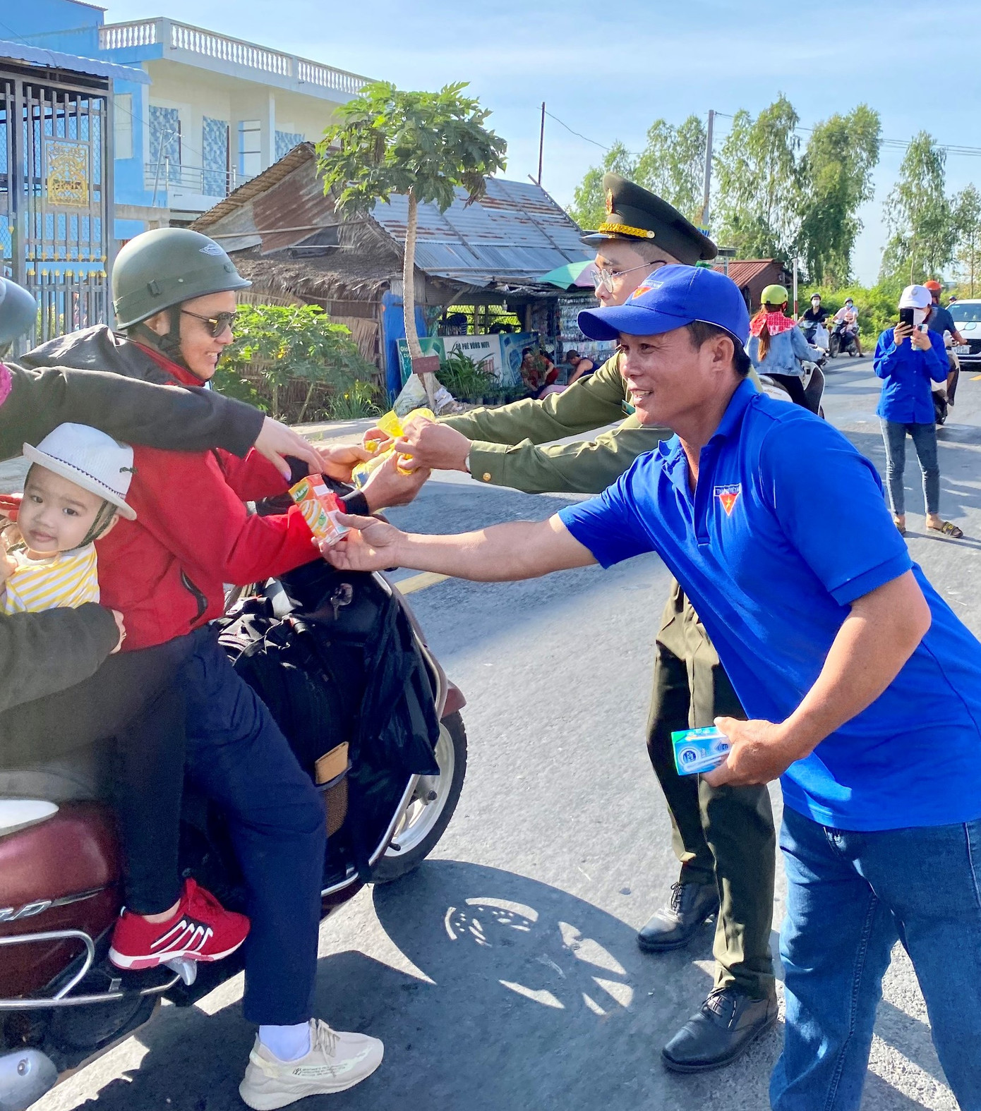 | Đại úy Trần Lê Anh Tuấn, Bí thư Đoàn Thanh niên Công an tỉnh Đồng Tháp cho biết, hưởng ứng các hoạt động xuân tình nguyện 2023, công an tỉnh triển khai hoạt động nhằm chia sẻ, giúp bà con trên đường về quê đón tết uống khăn lạnh, mì gói... đỡ vất vả và hạn chế mệt mỏi. |