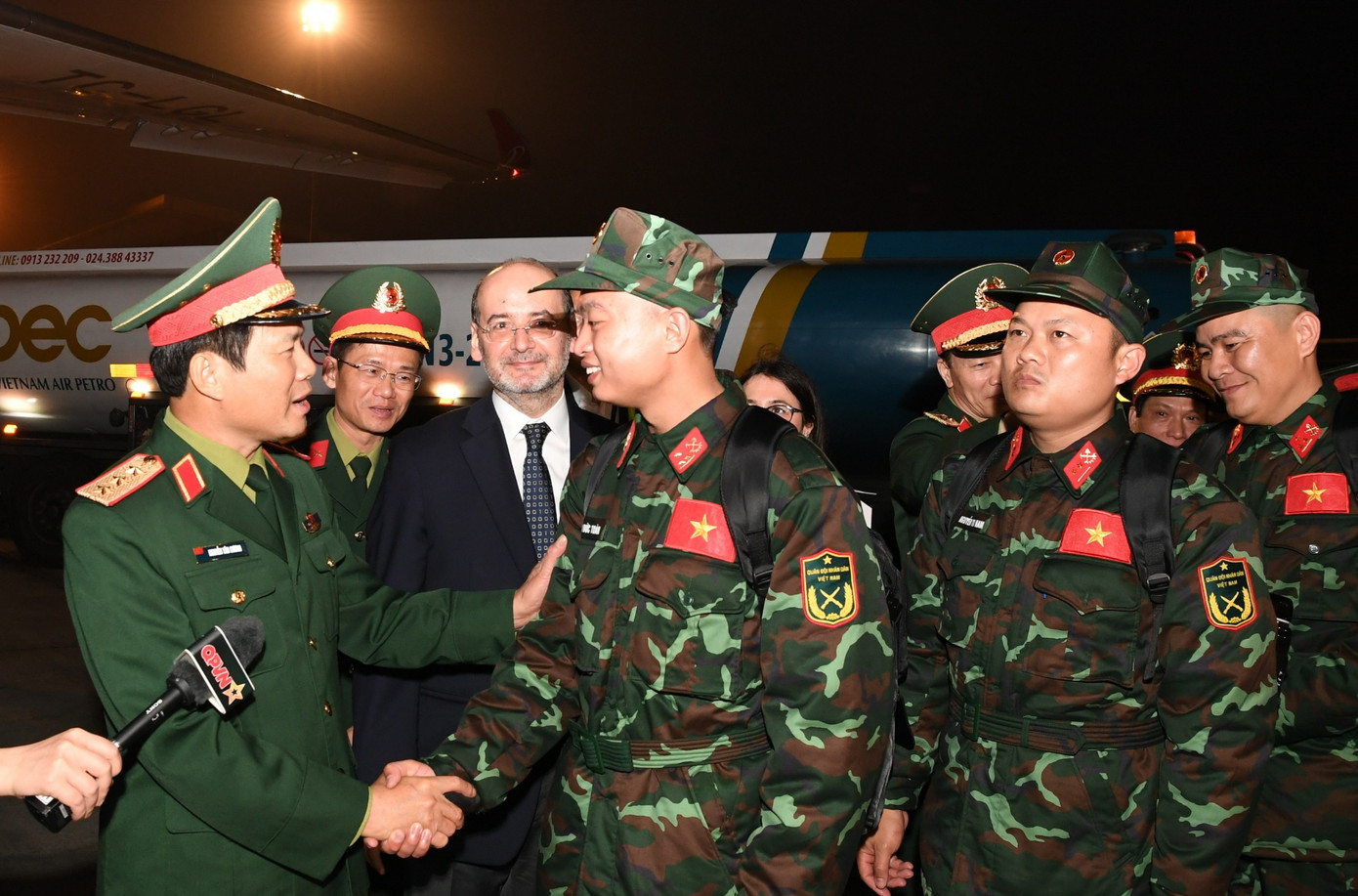 | 76 quân nhân bước lên máy bay rời Việt Nam tới Thổ Nhĩ Kỳ trong tối 12/2 |