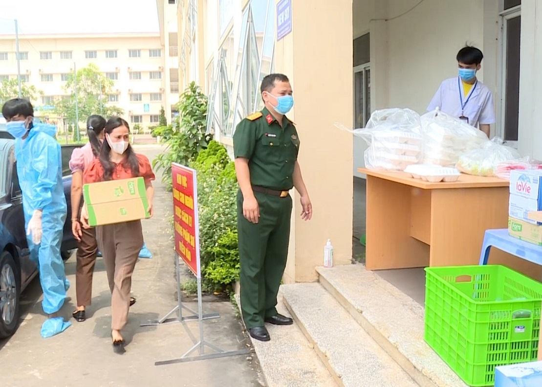 | Việc hỗ trợ tại Quế Võ được thực hiện theo phương châm "khu cách ly đến đâu, phụ nữ đến nấu ăn tại đó". |