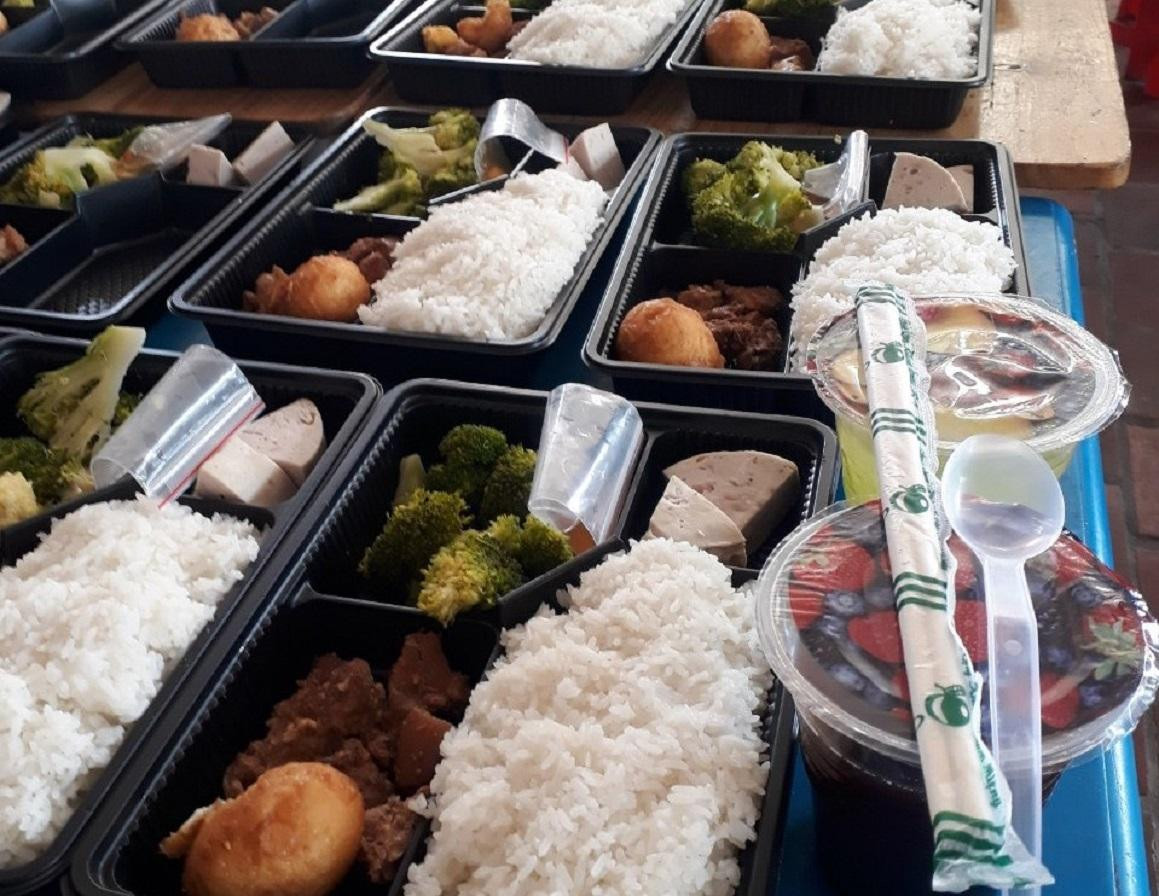 | Suất cơm dành cho người cách ly được phụ nữ huyện Quế Võ chuẩn bị. |