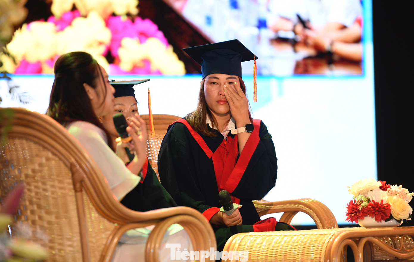 Khi được mời lên bục để chia sẻ, Hậu rơm rớm nước mắt vì tự hào và tủi thân bởi dưới sân khấu rộng lớn chẳng có người thân nào ở đó nhìn em khích lệ. “Em không nhớ từ khi nào mình đã quen với việc lủi thủi bắt xe đến trường một mình, thấy bạn bè có bố mẹ đưa đi đón về mỗi dịp quan trọng hay vui vẻ chụp ảnh cùng khi tốt nghiệp em đã không còn buồn và ấm ức nữa.