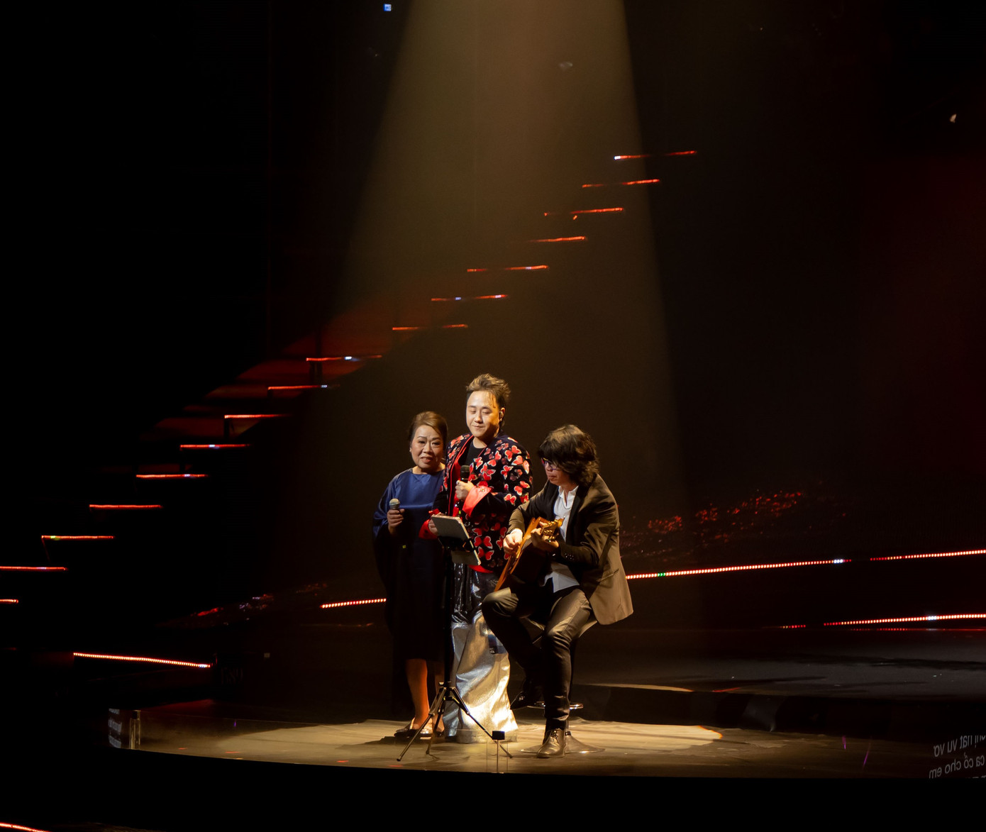 Góp phần vào sự thành công của live concert 1589 không thể không nhắc đến sự góp mặt của những ca sĩ khách mời. Đây đều là những nghệ sĩ có mối quan hệ thân thiết đặc biệt với Trung Quân như Diva Hà Trần, Thùy Chi, Khởi My. Nhưng ‘spotlight’ đêm diễn lại thuộc về vị khách mời cuối cùng. Người đó không ai khác ngoài mẹ ruột của Trung Quân. Cả hai đã có màn song ca ngập tràn cảm xúc với ca khúc Mẹ tôi của nhạc sĩ Trần Tiến.
