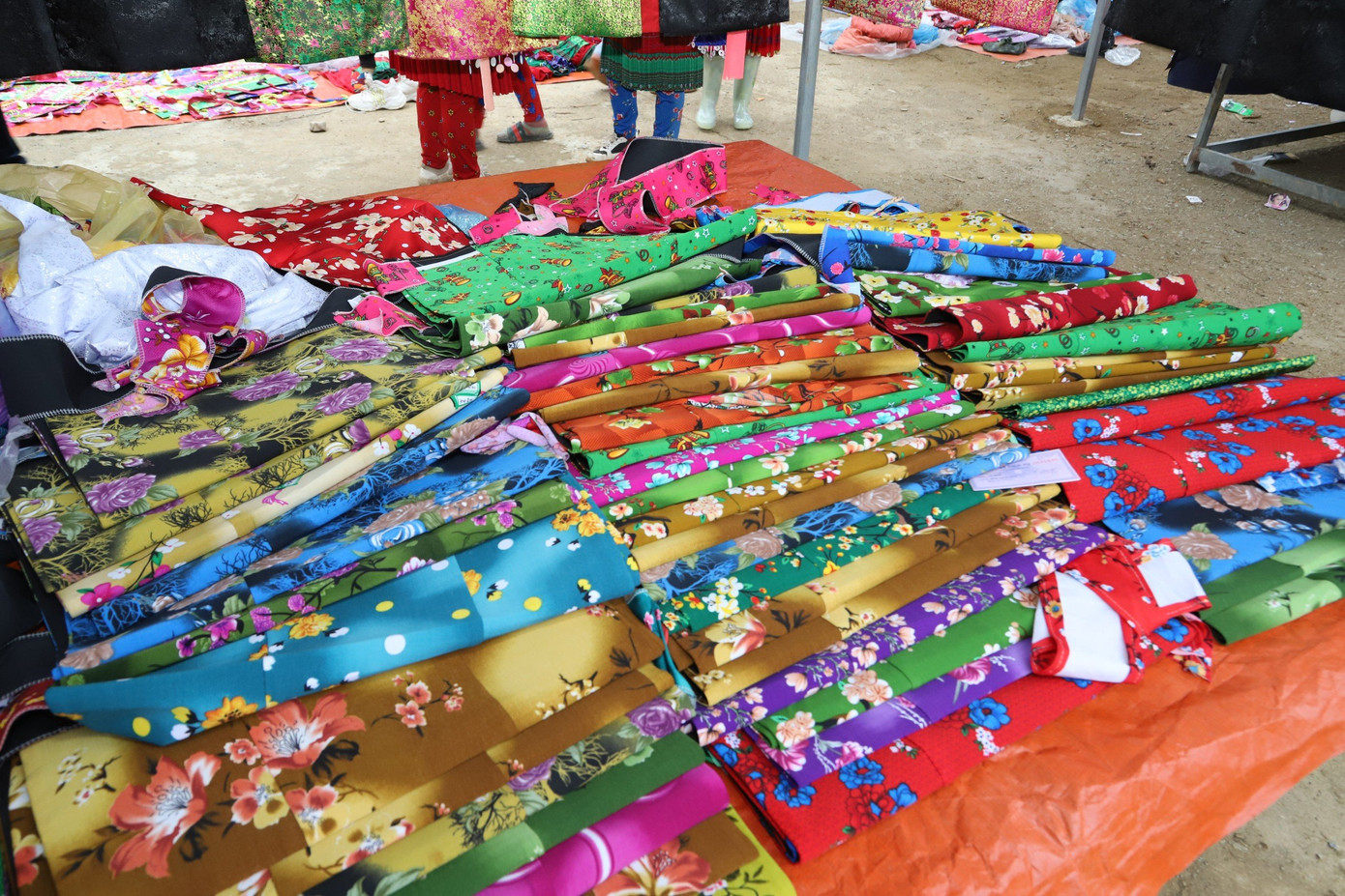 | Đến chợ phiên, các mẹ, các chị trong gia đình mua các đồ thổ cẩm về dệt, thêu váy, mua sắm, may quần áo mới cho các thành viên trong gia đình |