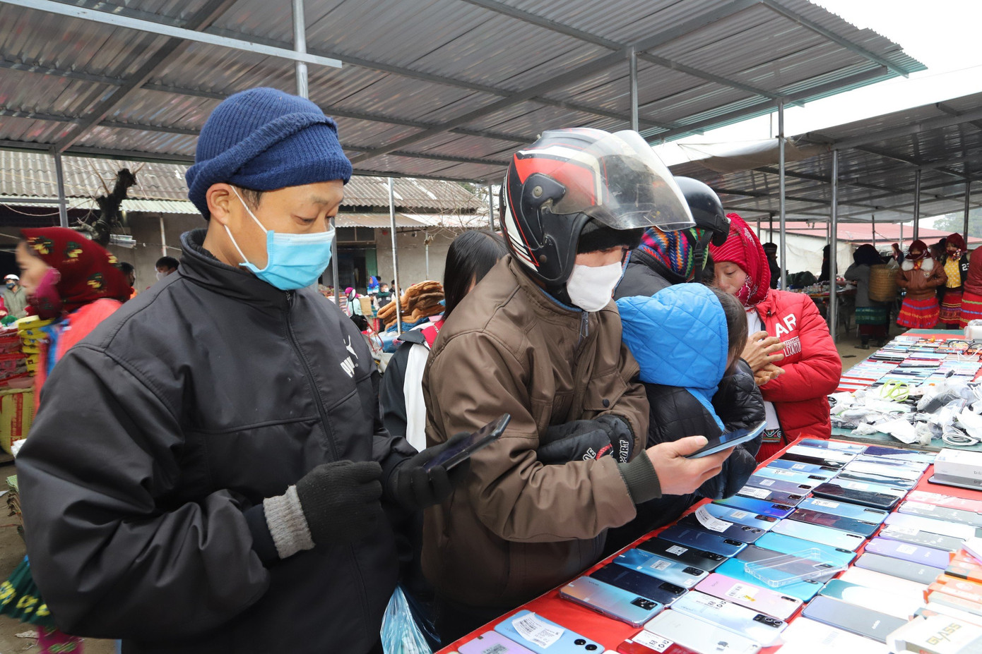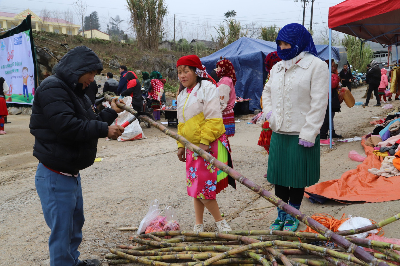 | Chợ phiên vùng cao ngày thường đã đông vui, nhưng vào dịp giáp Tết, phiên chợ còn tấp nập hơn, bao nhiêu nông sản phục vụ nhu cầu đón Tết của bà con các dân tộc thiểu số lại được bày bán phong phú và đậm sắc màu. |