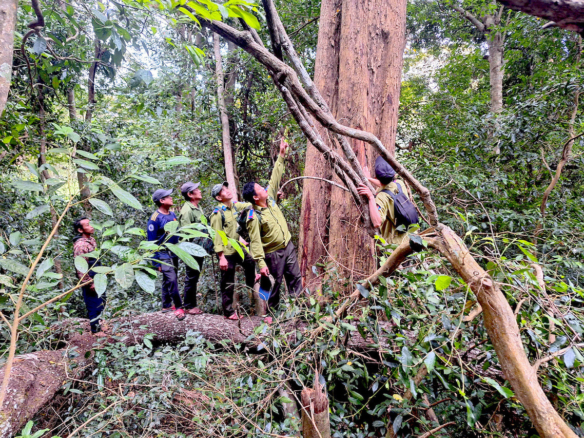 | Để bảo vệ quần thể giáng hương, cả ngày lẫn đêm, lực lượng bảo vệ rừng của Vườn Quốc gia Kon Ka Kinh thực hiện nghiêm chế độ đi tuần, đếm từng gốc, có kế hoạch bảo vệ bài bản. |