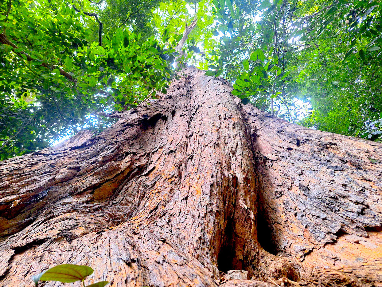 | Một cây giáng hương cổ thụ 6 người ôm không xuể, sừng sững giữa núi rừng. |