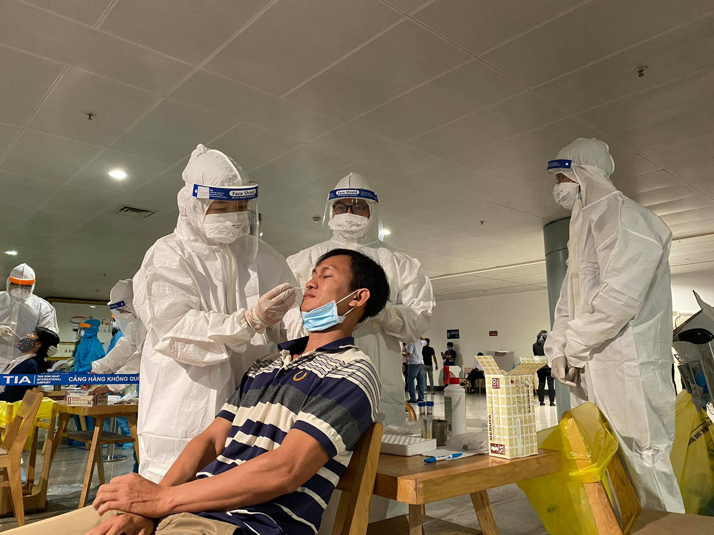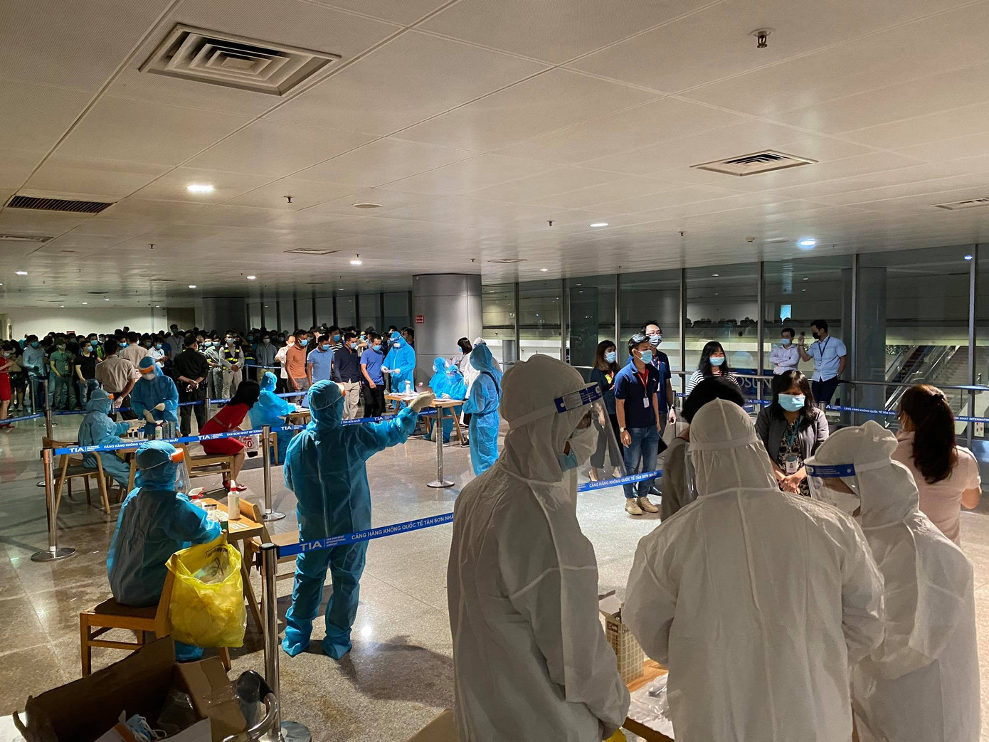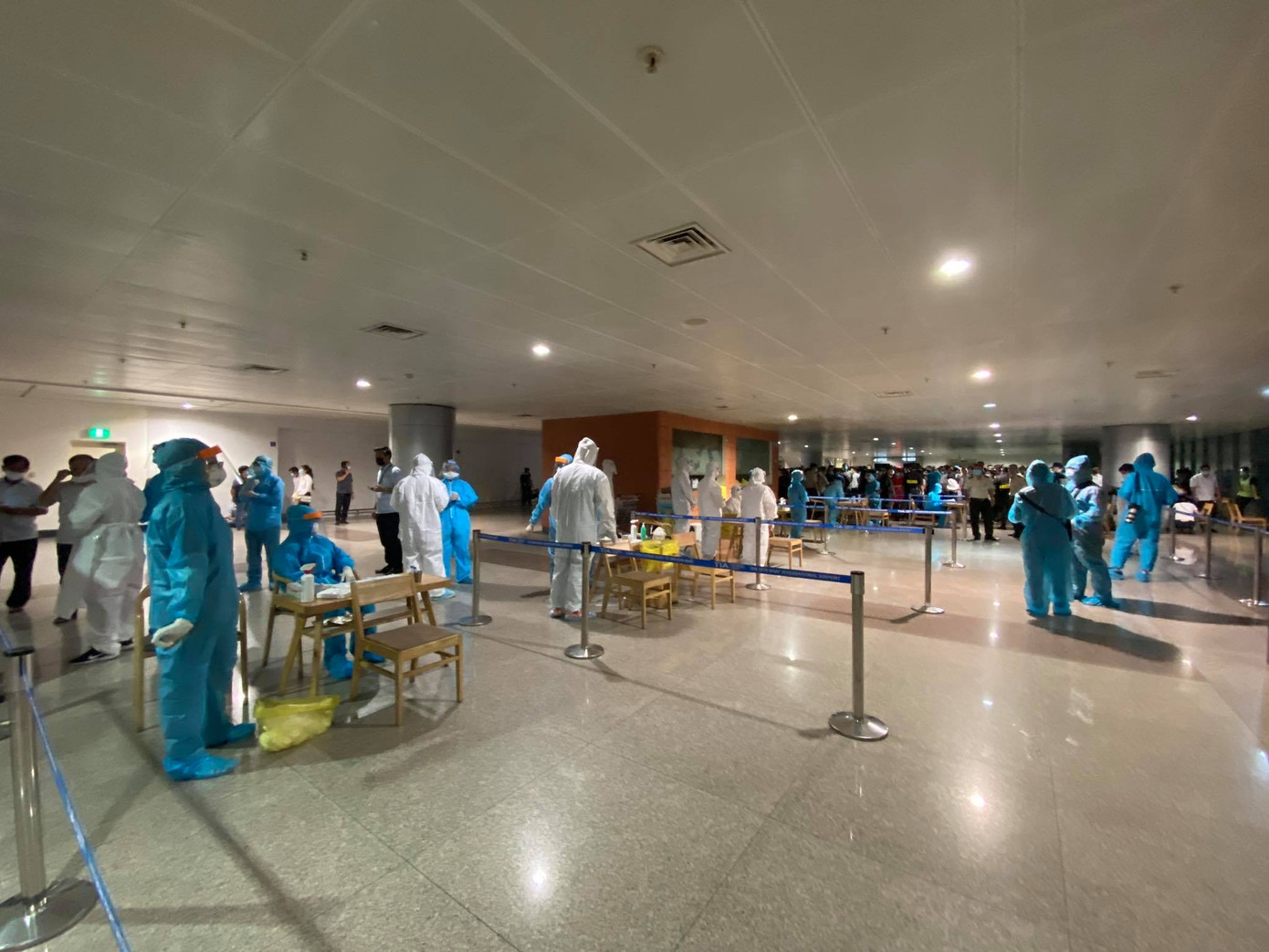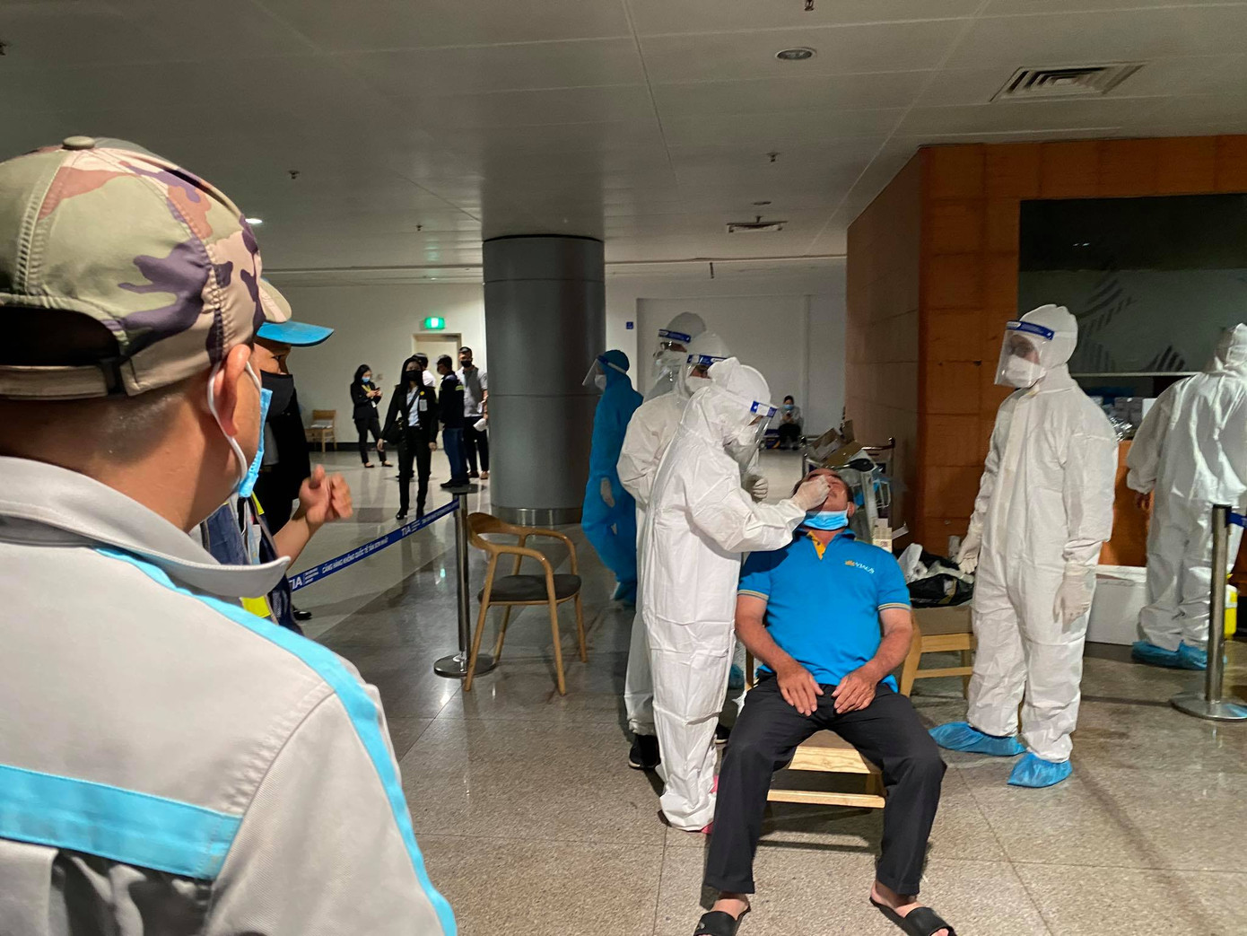 Tất cả F1, F2 của bệnh nhân 1979 và nhân viên sân bay đều được tập trung tại nhà ga quốc tế để tiến hành lấy mẫu trong đêm 6/2.