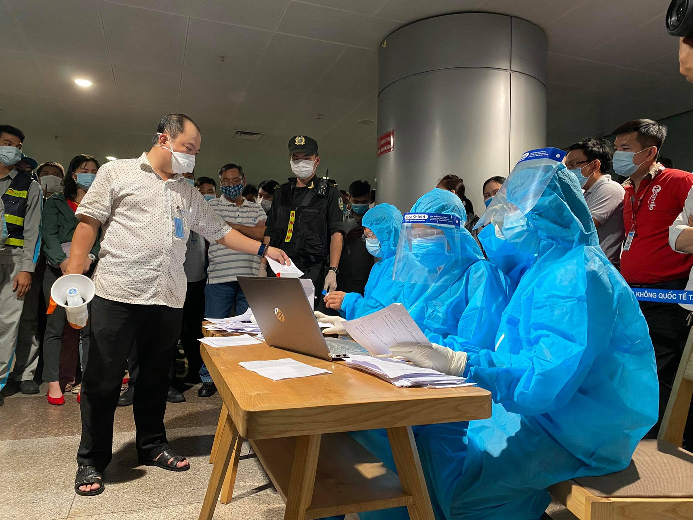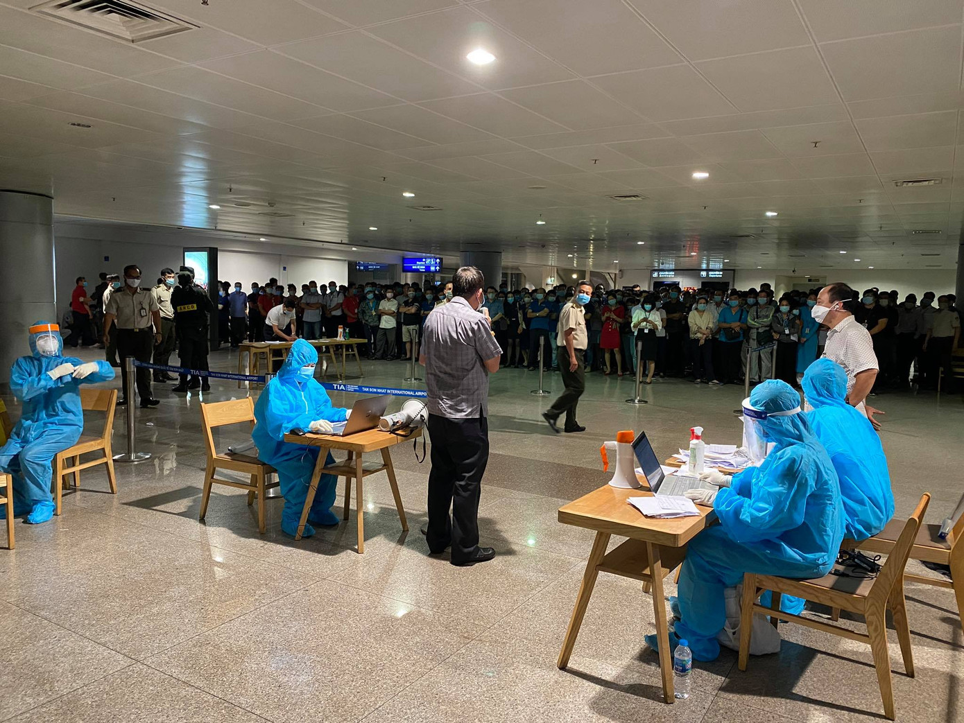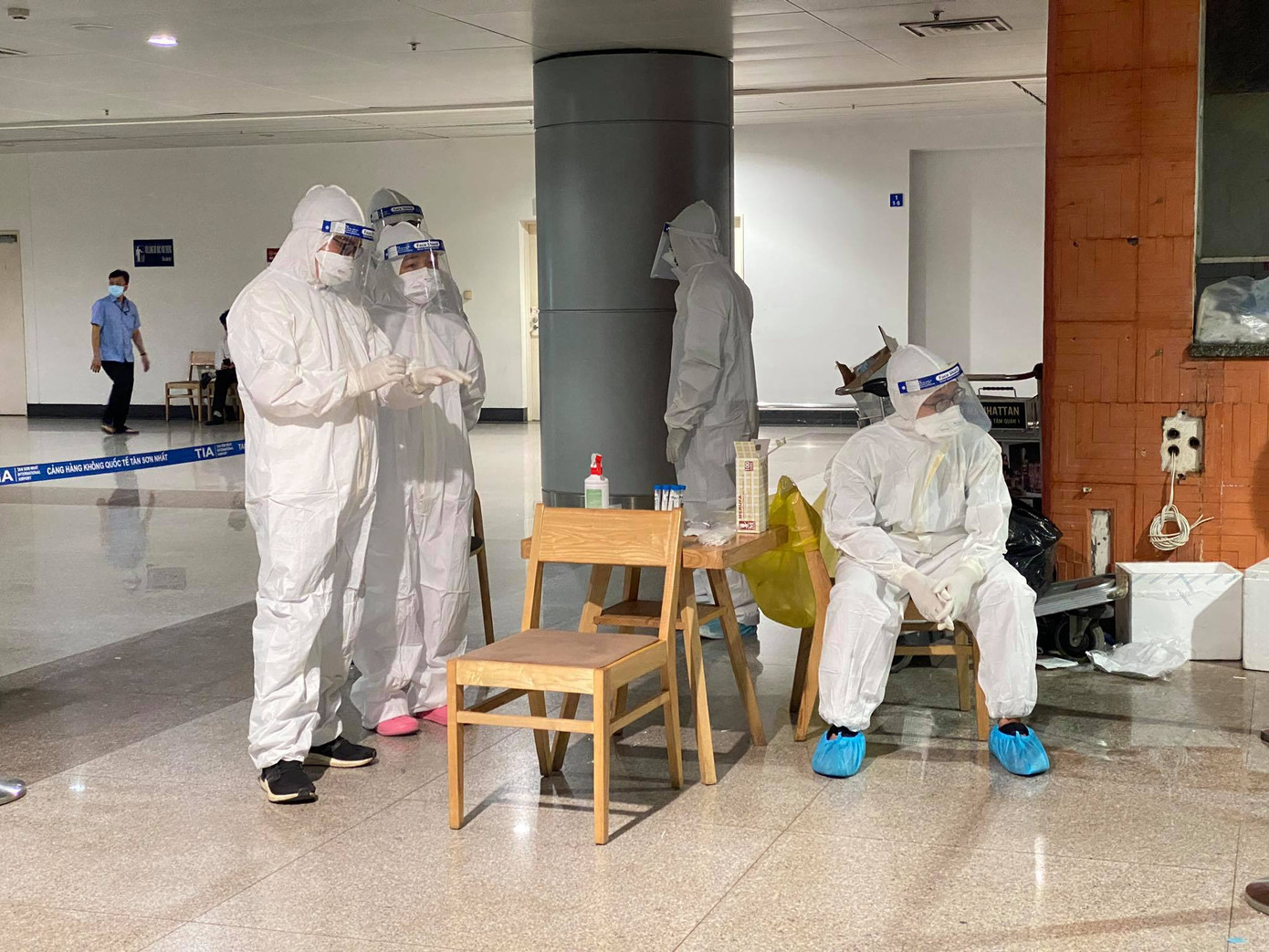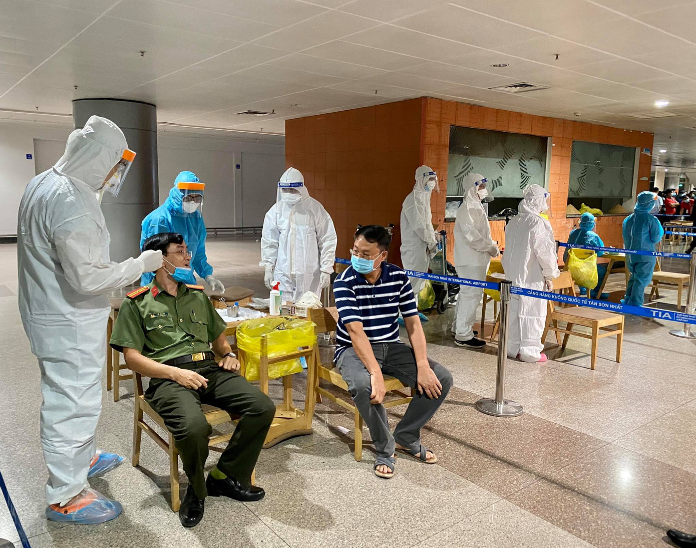 Tất cả F1, F2 của bệnh nhân 1979 và nhân viên sân bay đều được tập trung tại nhà ga quốc tế để tiến hành lấy mẫu trong đêm 6/2.