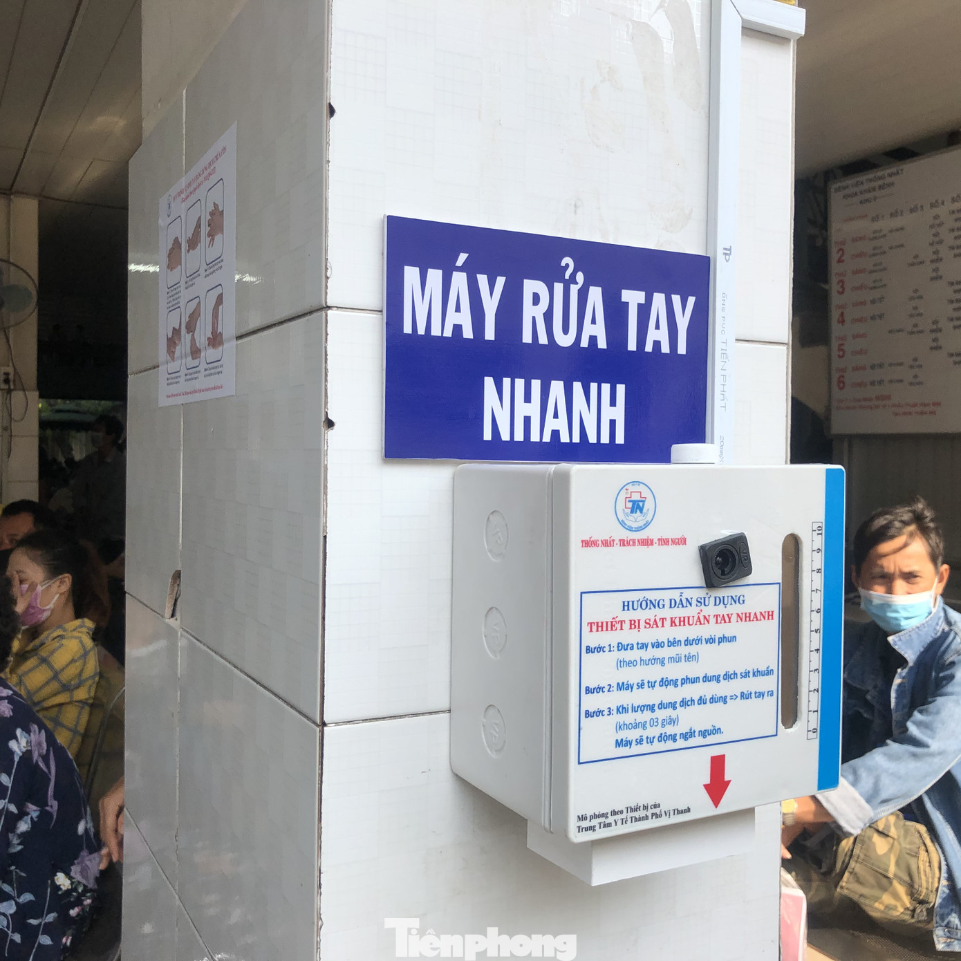 Vài ngày gần đây, máy rửa tay tự động của Bệnh viện Thống Nhất (TPHCM) được đưa vào sử dụng, giúp người dân đến khám chữa bệnh rất yên tâm. Máy đặt ở những vị trí thuận tiện để ai cũng có thể thấy và sử dụng.
