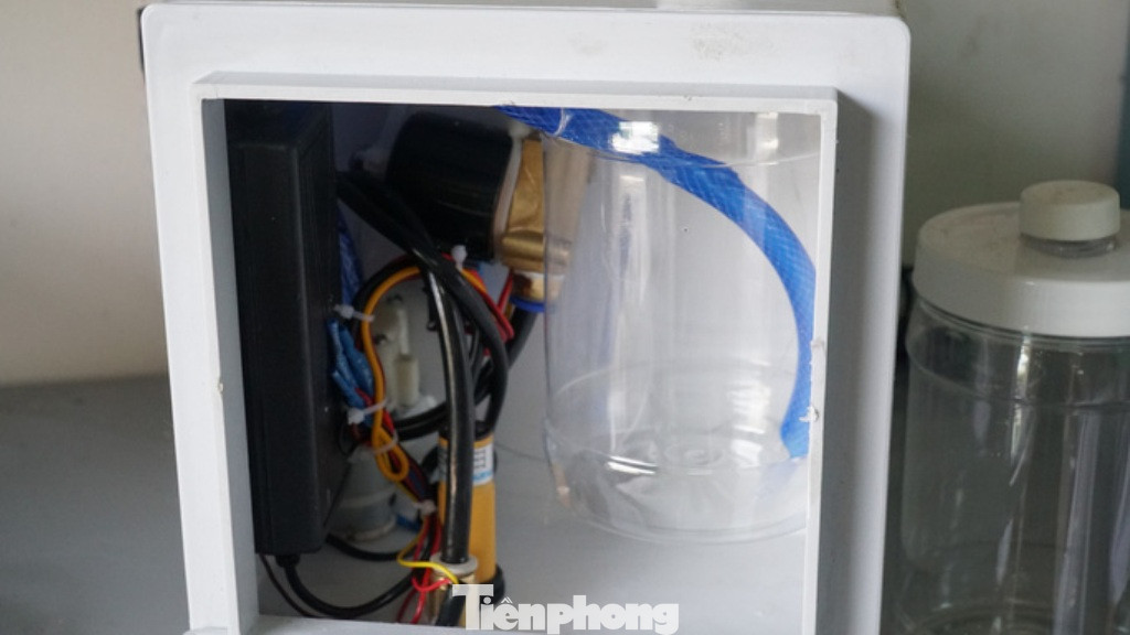 Đặc biệt, máy rửa tay tự động này chính là sản phẩm "cây nhà lá vườn" do tập thể y bác sĩ, công nhân viên của bệnh viện Thống Nhất tự sản xuất. Chỉ bằng những dụng cụ đơn giản như hộp gen, ống nhựa, chai lọ, dây điện và dung dịch khử khuẩn... là có ngay một chiếc máy rửa tay thông minh.