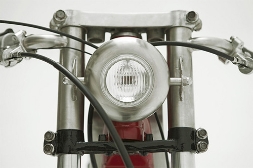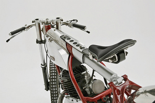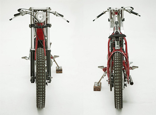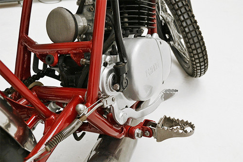 Nằm trên gắp sau là đèn hậu, thực tế được lấy từ một chiếc thùng rác và tái chế thành một chi tiết trên xe. Chụp phuộc và tay lái tự chế bằng thép không gỉ. Hệ thống xả mới được tạo hình và bố trí nằm thấp. Bộ lốp IRC Trials. Chỉ có chắn bùn sau.