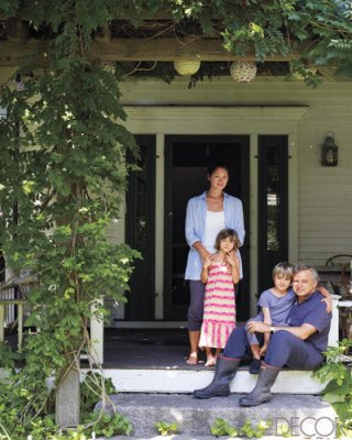 Keith McNally cùng vợ anh, Alina cùng 2 thiên thần nhỏ Alice và George trước biệt thự điền trang ở Martha’s Vineyard.