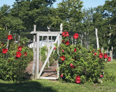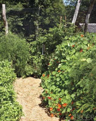Vườn chính của nhà trông nhiều loại cây như cà chua, măng tây, cây sen cạn.