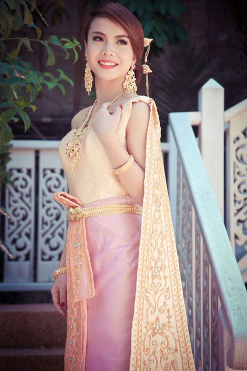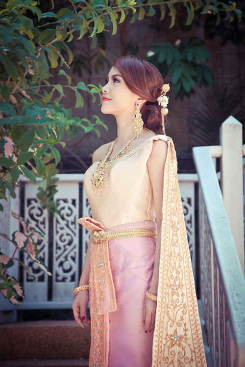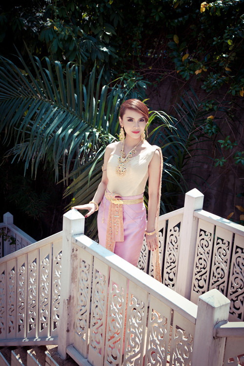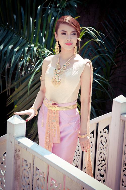 Đây là lần đầu tiên Yến Trang được diện bộ quốc phục Thái mà còn được hoá thân thành cô gái trong ngày thành hôn.