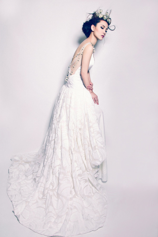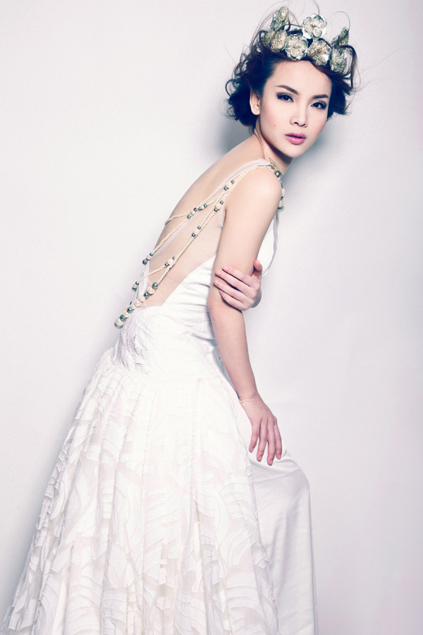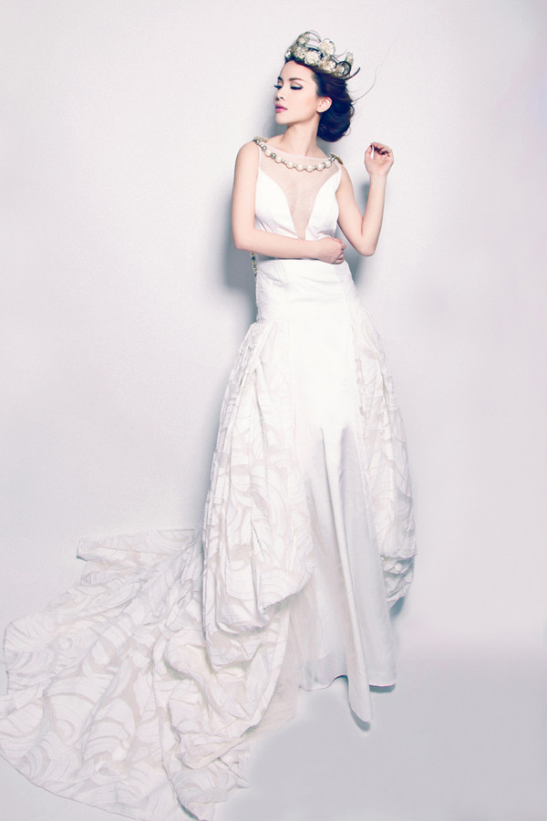 Yến Trang đẹp kiêu sa với váy trắng muốt gợi cảm và vương miện cầu kỳ.