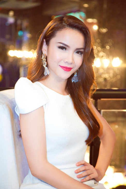 Tham dự sự kiện tại TP.HCM, nữ ca sĩ xinh đẹp lựa chọn bộ trang phục màu trắng với phần cầu vai cách điệu của nhà thiết kế Huy Trần, giúp cô thêm trẻ trung nhưng vẫn không kém phần quyến rũ.