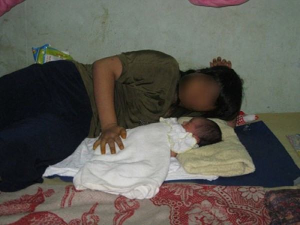 Bà mẹ nhí cùng đứa trẻ mới sinh.