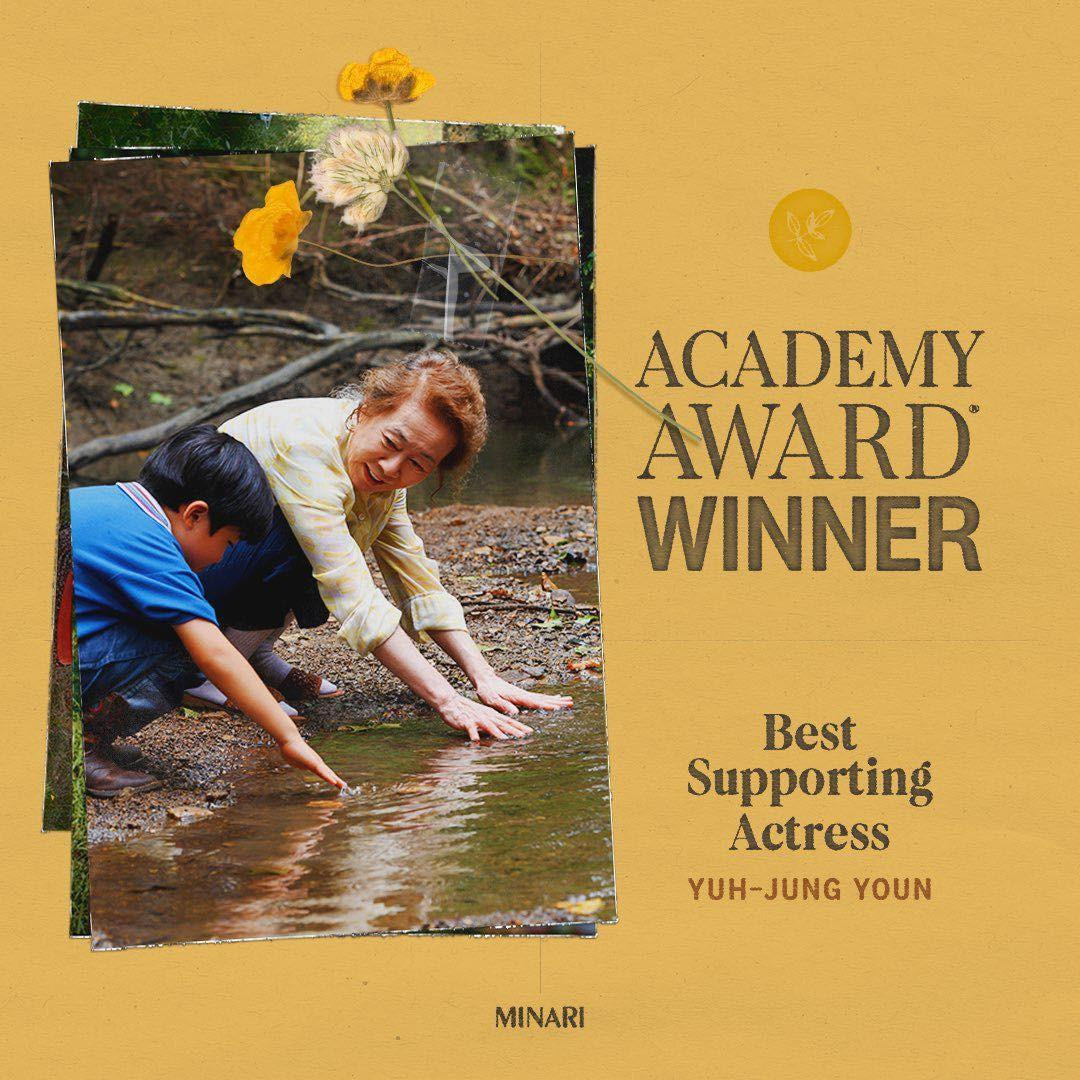 Tác phẩm mang về vinh quang cho Youn Yuh Jung là Minari (Khát Vọng Đổi Đời) của đạo diễn Lee Isaac Chung. Bộ phim mang đến cho khán giả câu chuyện nhẹ nhàng, tinh túy về một gia đình Hàn Quốc nhập cư Mỹ vào những năm 1980, luôn cố gắng cải thiện cuộc sống bằng cách bắt đầu công việc từ một trang trại ở Arkansas. Trước đó, Minari cũng đã ghi tên mình vào hạng mục “Phim nói tiếng nước ngoài hay nhất” tại giải Quả cầu vàng 2021.