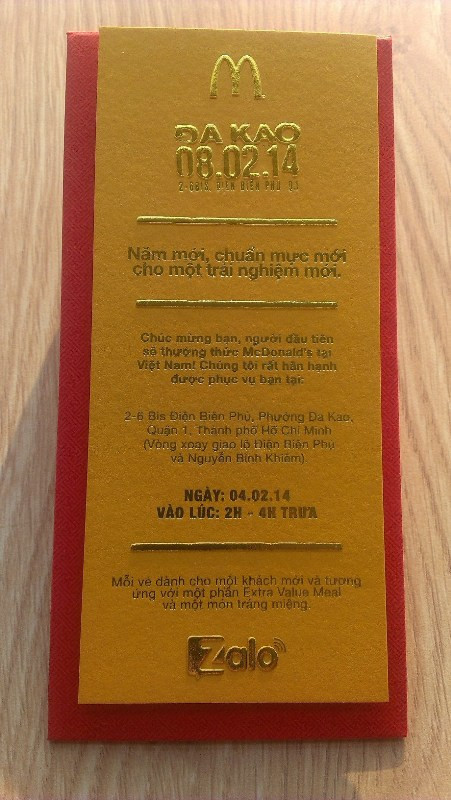 Người dùng Zalo sẽ là những khách hàng Việt đầu tiên được thưởng thức McDonald’s miễn phí trước cả ngày khai trương cửa hàng. Sự ưu ái cho người dùng Zalo đã cho thấy tầm quan trọng của OTT nội địa này trong chiến lược của Mc Donald’s và cũng cho thấy nước cờ được tính toán kĩ của thương hiệu thức ăn nhanh hàng đầu thế giới này.