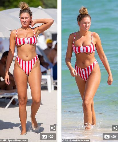 Và như đã hứa, cô và Adam Collard đang tận hưởng giây phút bên nhau ở Miami. Hình ảnh họ liên tục tình tứ, nắm tay, ôm hôn lọt ống kính giới săn ảnh