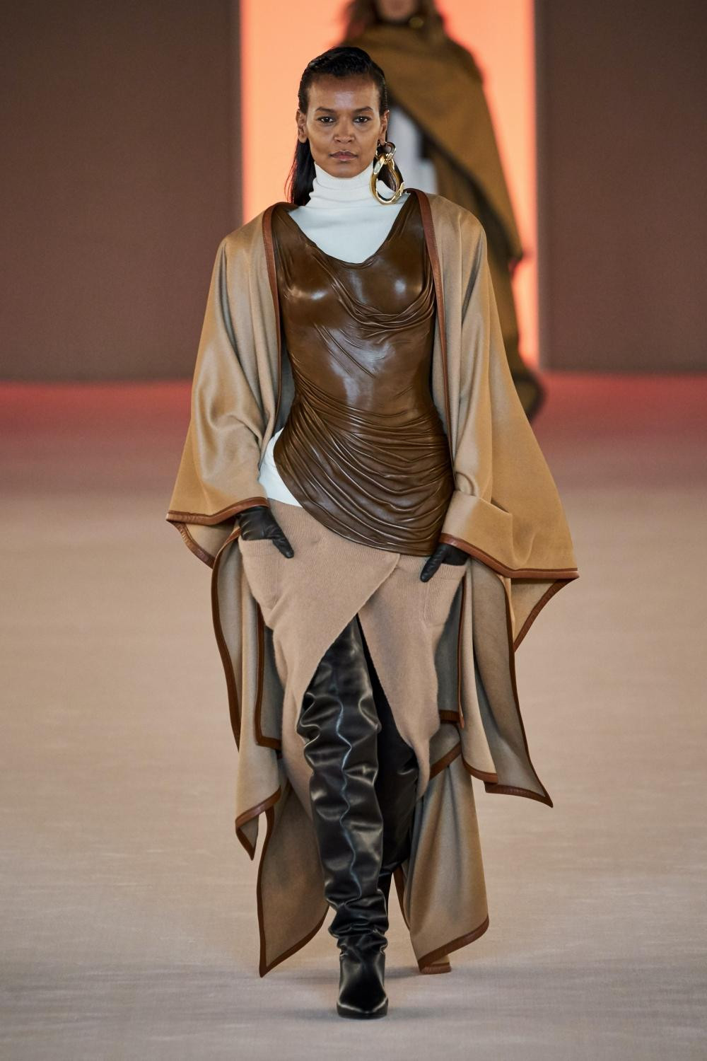 Mẫu váy không phải làm từ vải lụa mềm để tạo các nếp nhăn như ảnh. Nếu như nhìn kỹ, bạn sẽ thấy trong bất kỳ bức hình nào, các nếp nhăn cũng không hề có sự khác biệt. Lý do là vì thiết kế được may từ một lớp da với các nếp nhăn được xếp cố định, ôm sát theo số đo cơ thể Zendaya như một lớp da của chính cô. Thiết kế ôm sát cơ thể của Zendaya như một lớp da nên ngoại trừ cô, sẽ không ai có thể mặc được thiết kế này, đơn giản vì cho dù có 3 số đo giống nhau, cũng sẽ khó để vừa vặn vì những phần khác trên cơ thể khó có thể tương đồng y hệt.